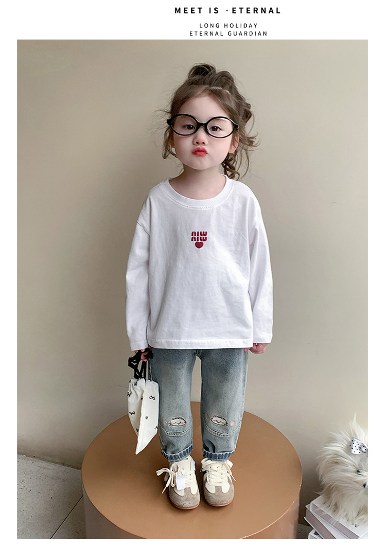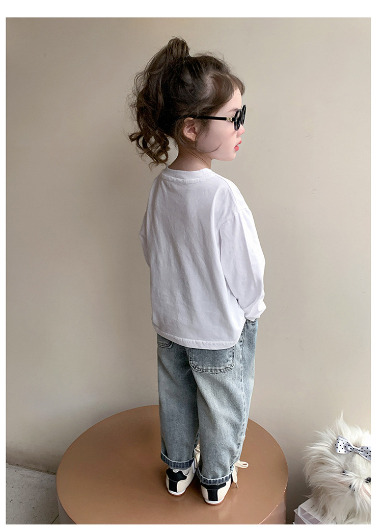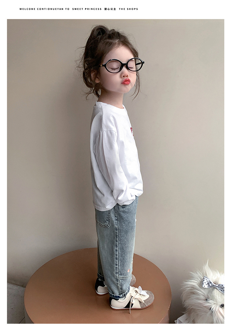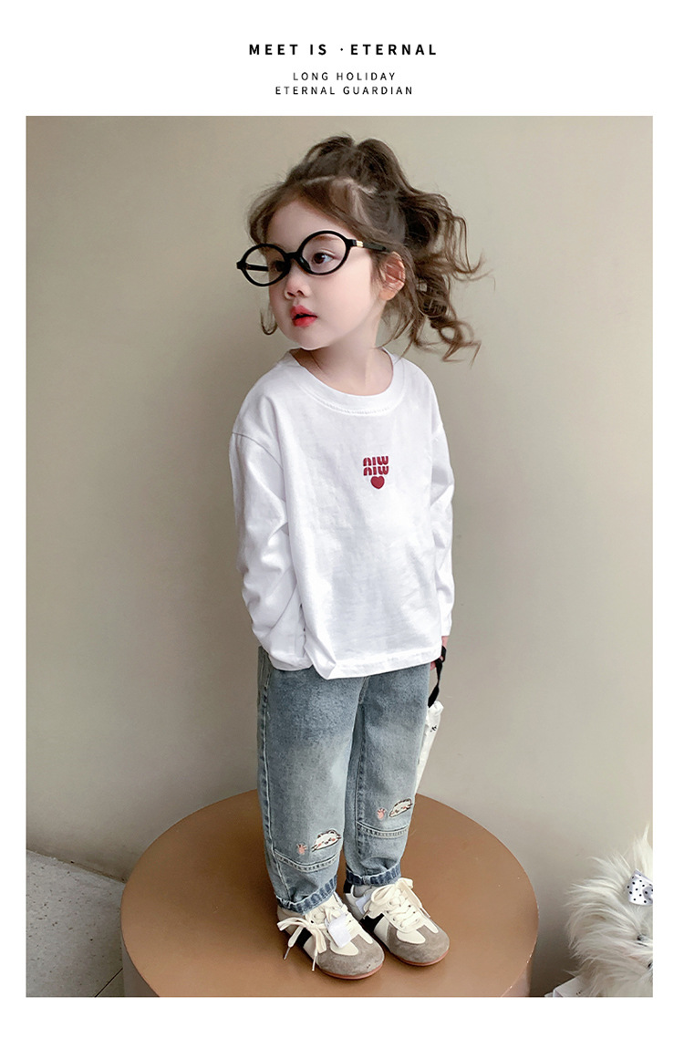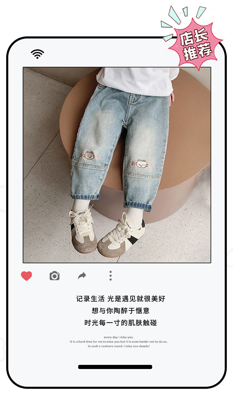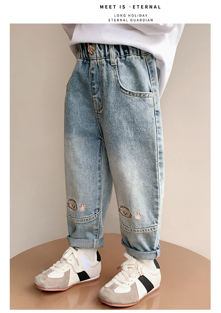 소녀 새끼 고양이 수 놓은 청바지 2025 새로운 패션 어린 소녀 바지 중소 어린이 스트레이트 다리 바지스토어 가기