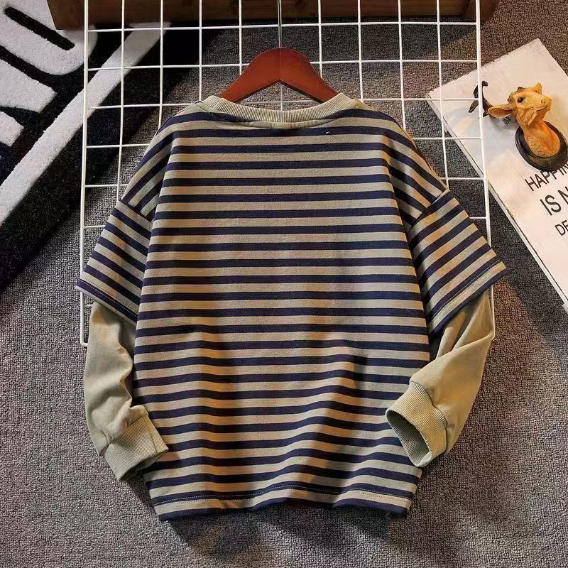 봄과 가을 어린이 줄무늬 바느질 긴팔 2025 새로운 아동복 소년 스위트 셔츠 큰 어린이 느슨한 탑 트렌디스토어 가기