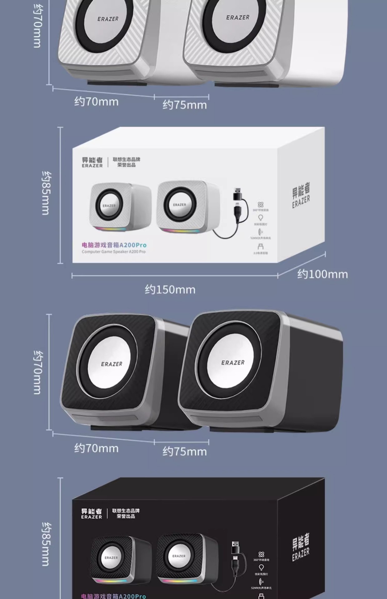 이능자 A200 유선 데스크탑 오디오 RGB 발광 노트북 데스크탑 컴퓨터 외부 범용 스피커 소형스토어 가기