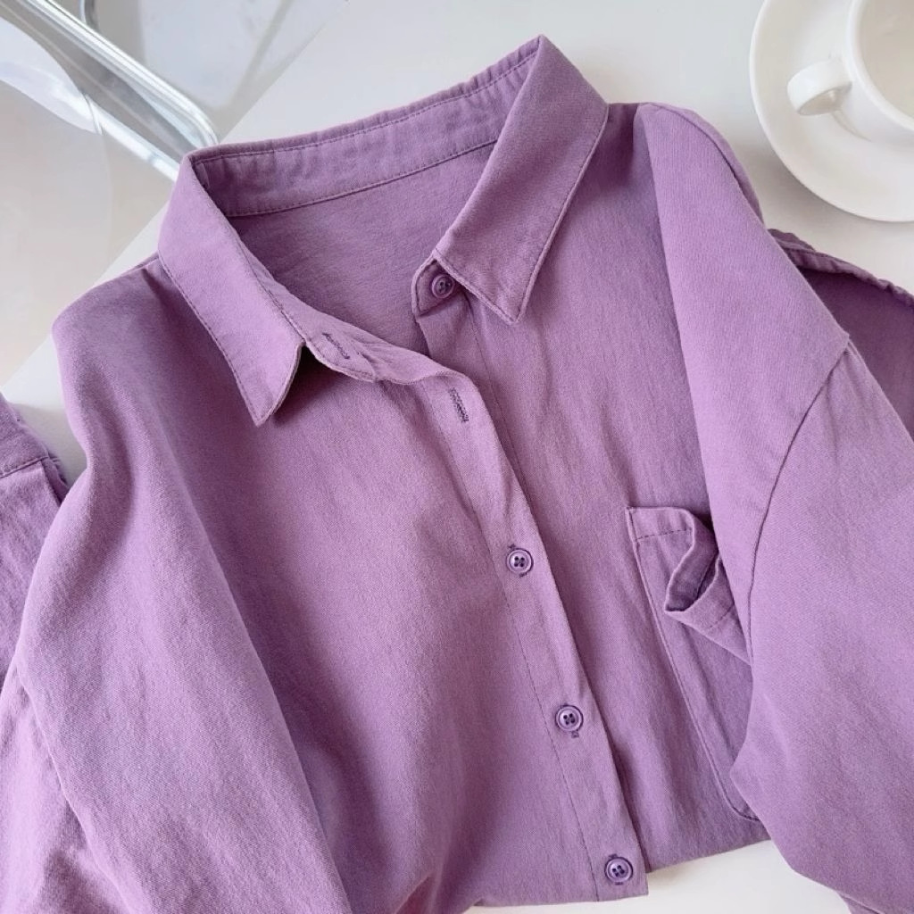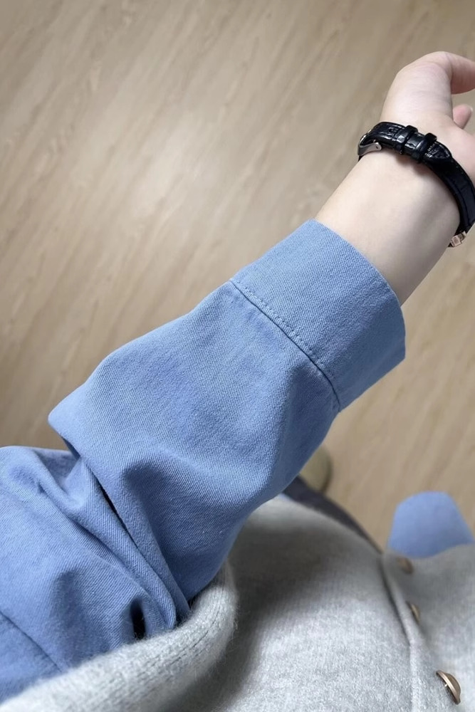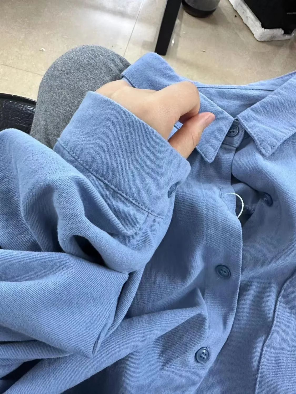 봄과 가을 청면 셔츠 여성용 신선 해 보이는 느슨한 올 매치 슬림 모양의 통근 셔츠 작은 셔츠스토어 가기