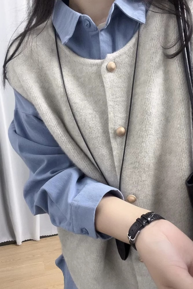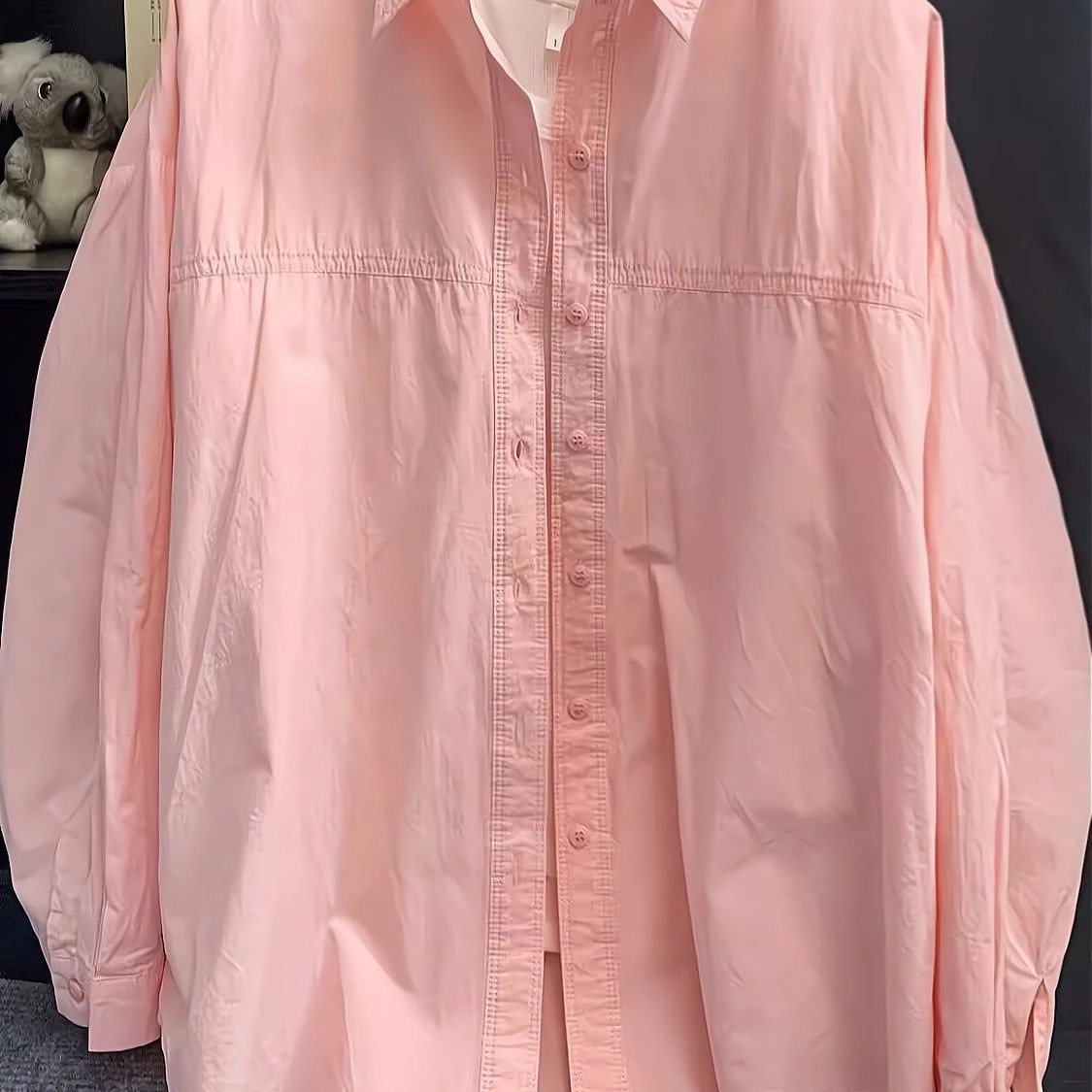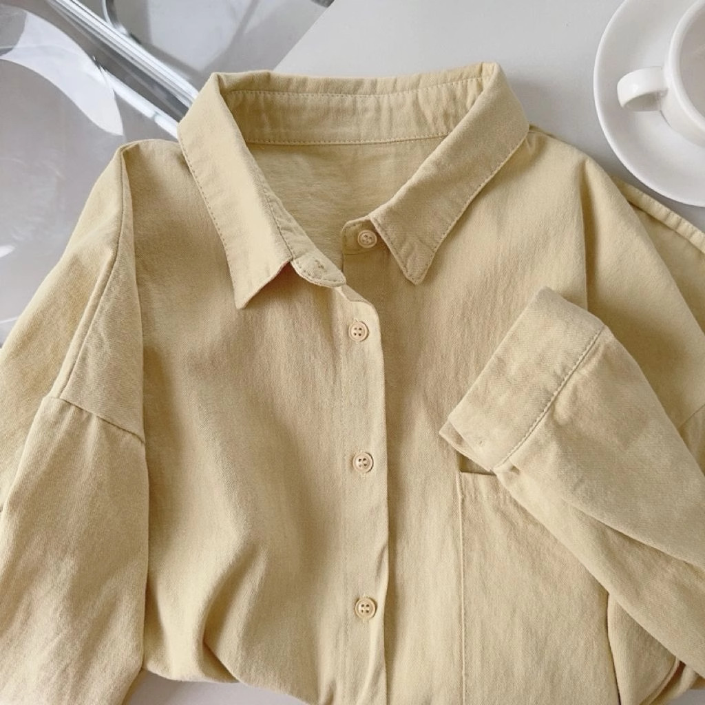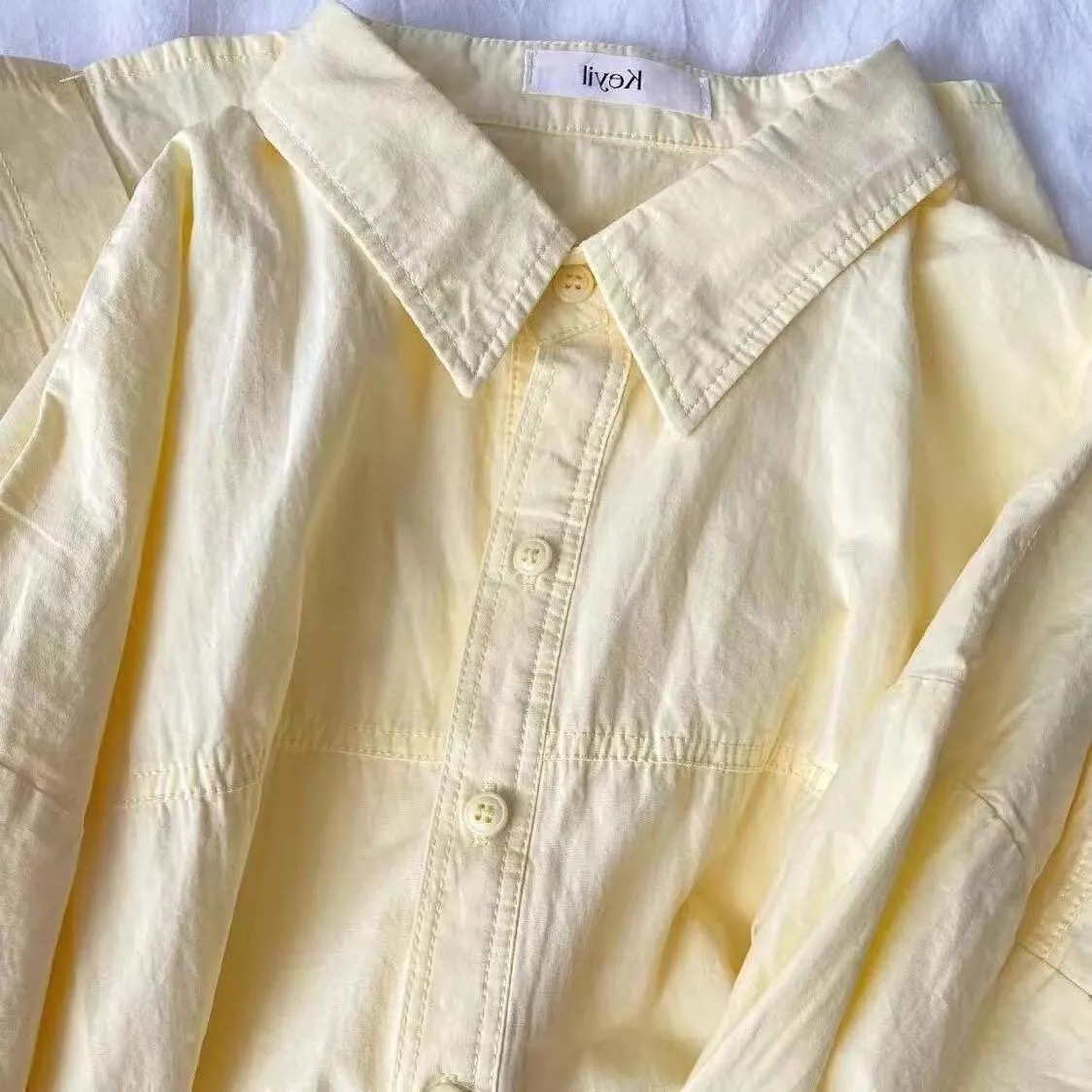 봄과 가을 청면 셔츠 여성용 신선 해 보이는 느슨한 올 매치 슬림 모양의 통근 셔츠 작은 셔츠스토어 가기