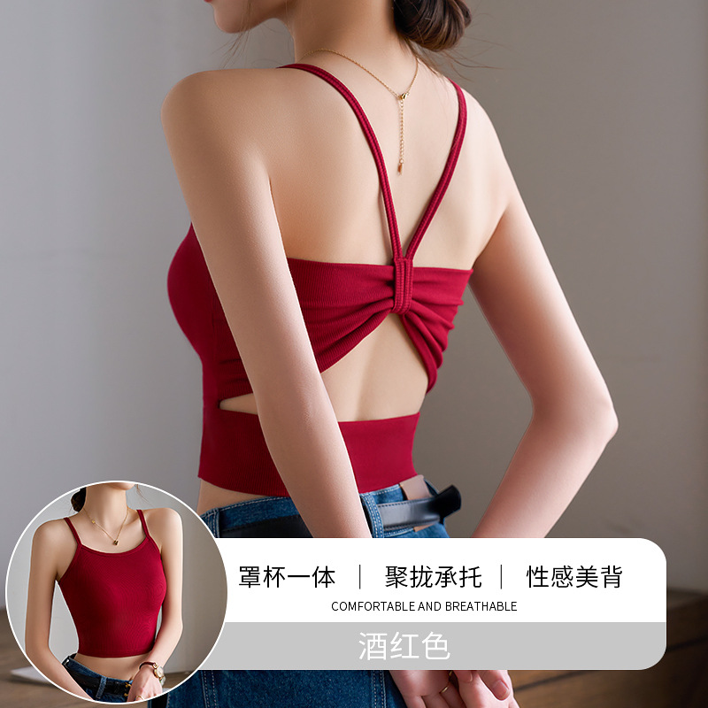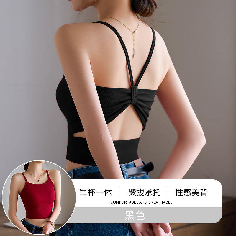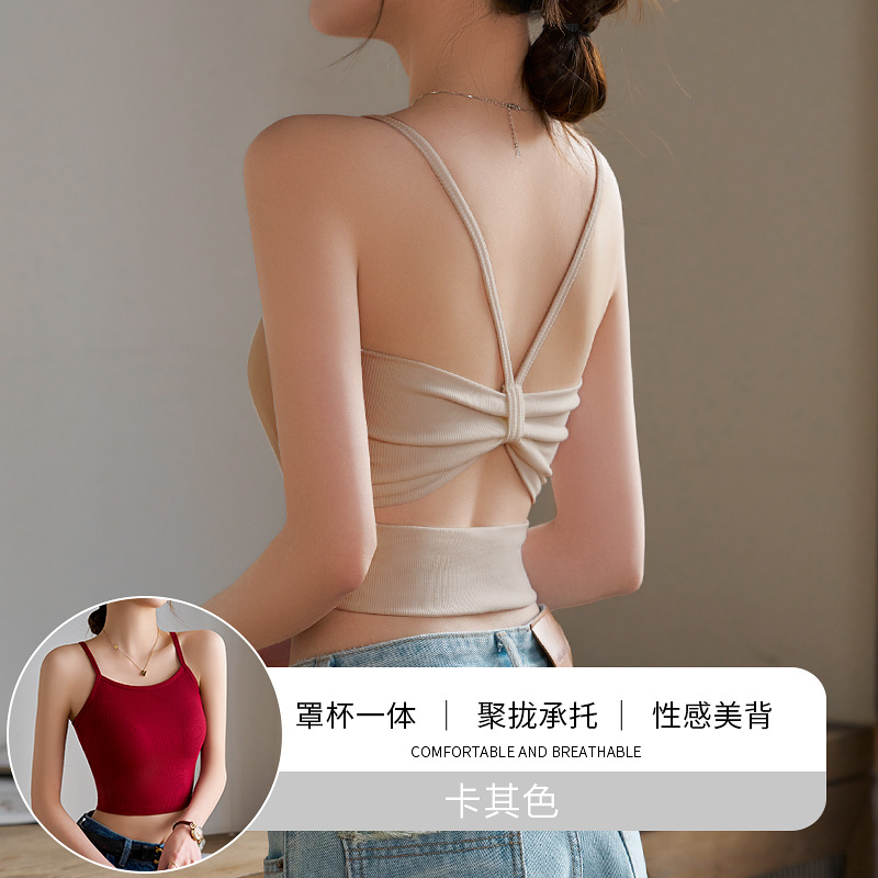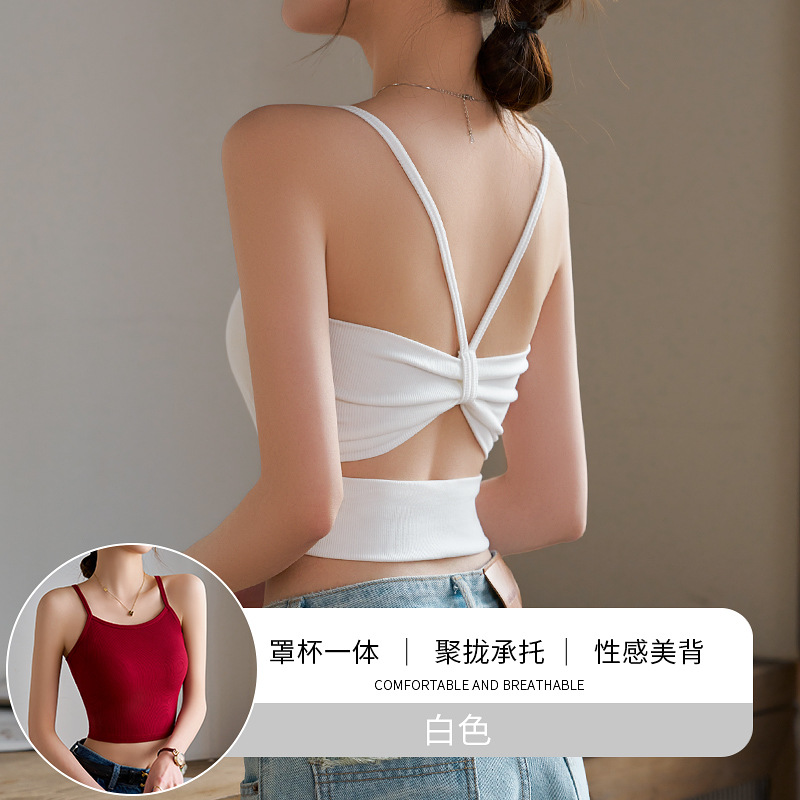 얇은 어깨 스트랩 카미솔 여성용 여름 아우터 내복 흉부 패드 시사이드웨어 스파이스 걸스 아름 다운 백 브라 원피스 탑스토어 가기