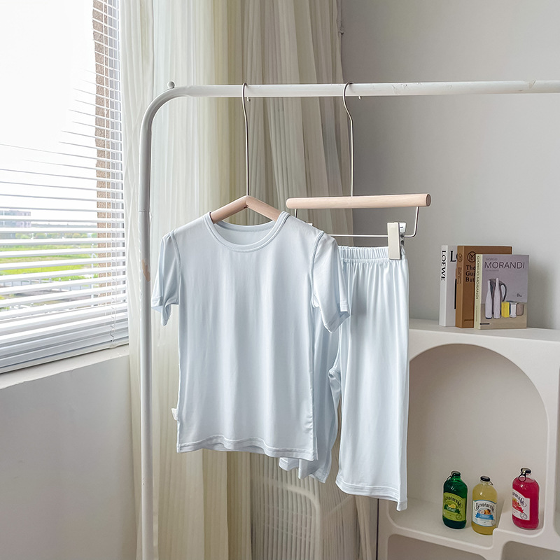 2025 어린이 여름 Youcan 뼈없는 에어컨 의류 세트 소년 소녀를위한 반팔 얇은 잠옷
