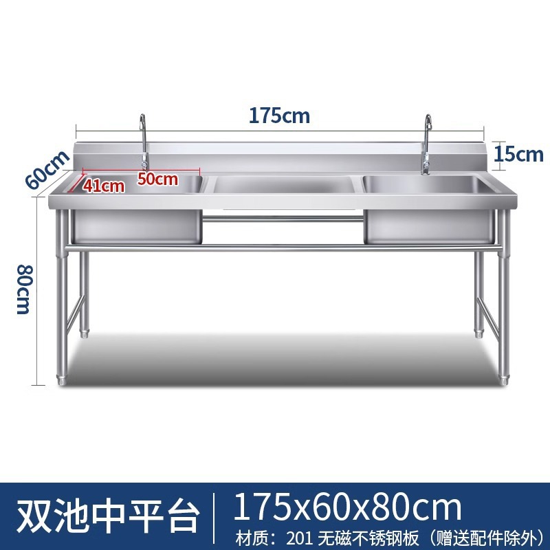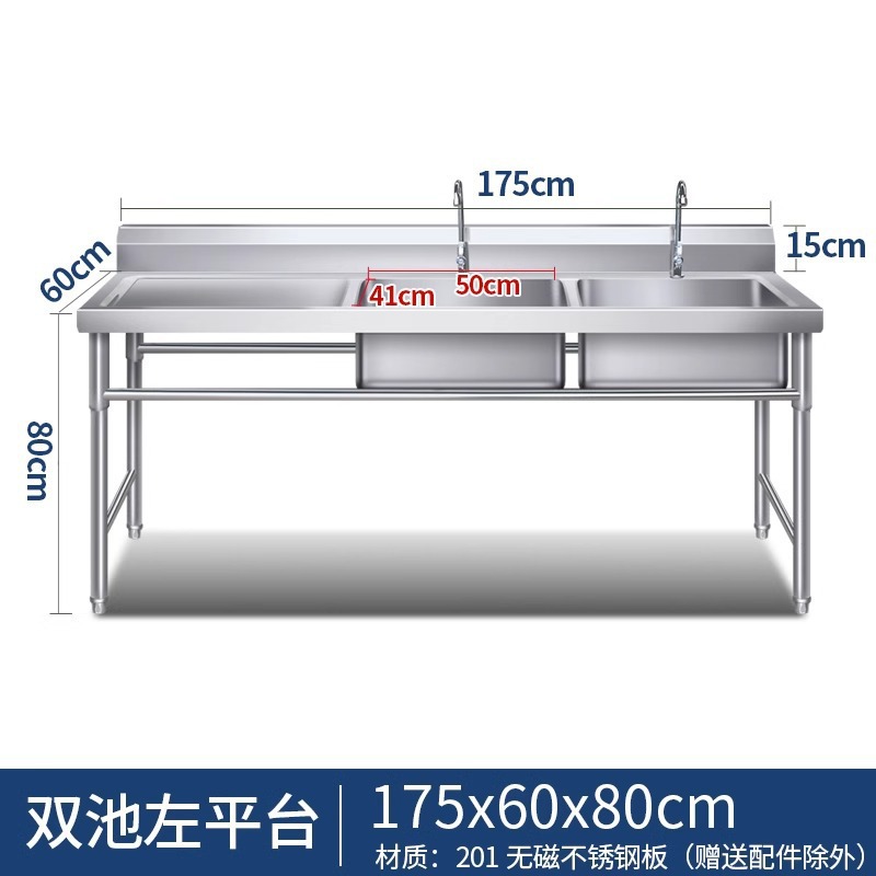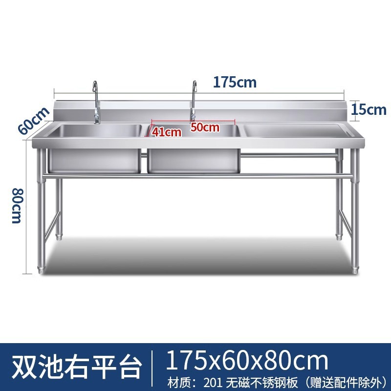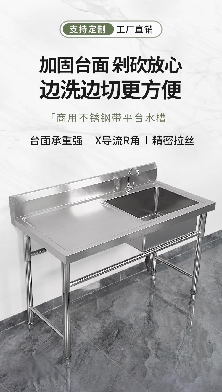 加厚不锈钢单双水槽酒店学校厨房洗碗洗菜池家用商用洗手盆带平台