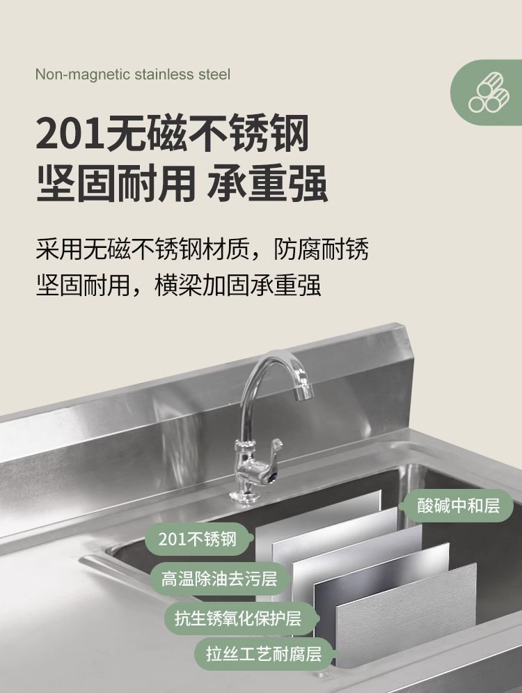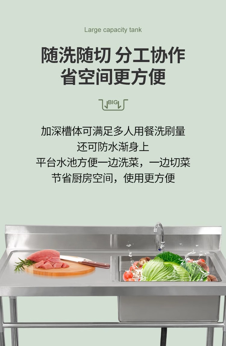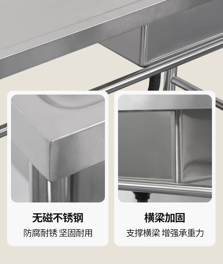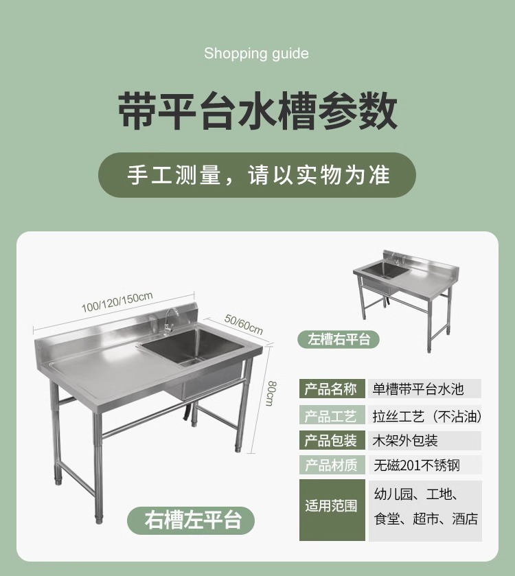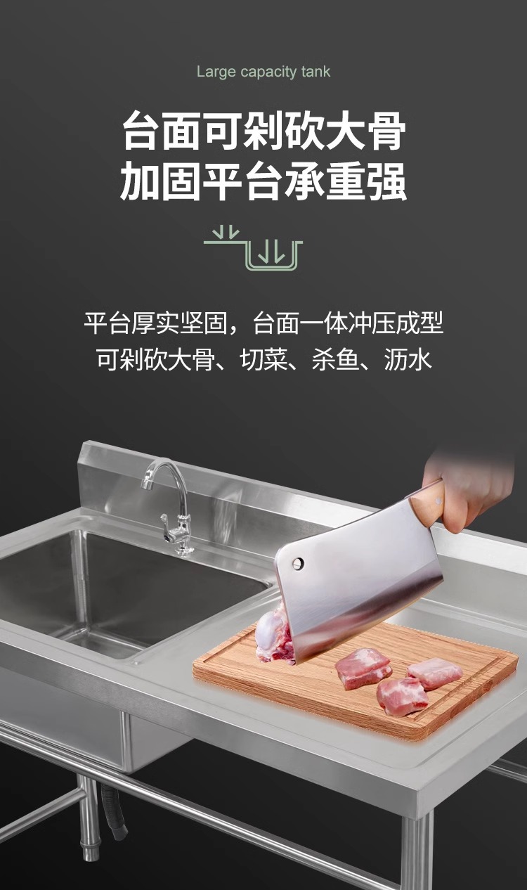 加厚不锈钢单双水槽酒店学校厨房洗碗洗菜池家用商用洗手盆带平台
