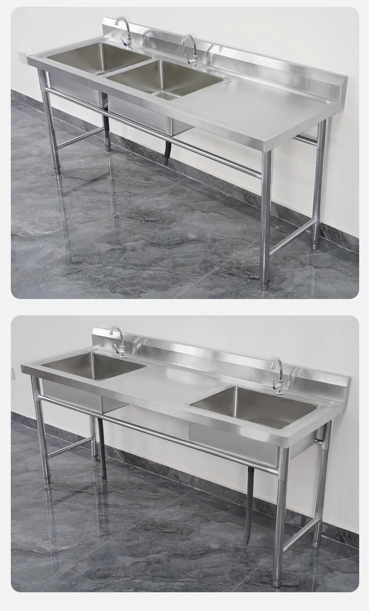 두꺼운 스테인레스 스틸 싱글 및 더블 싱크 호텔 학교 주방 식기 세척기 야채 싱크 가정용 상업용 워시 분지 플랫폼