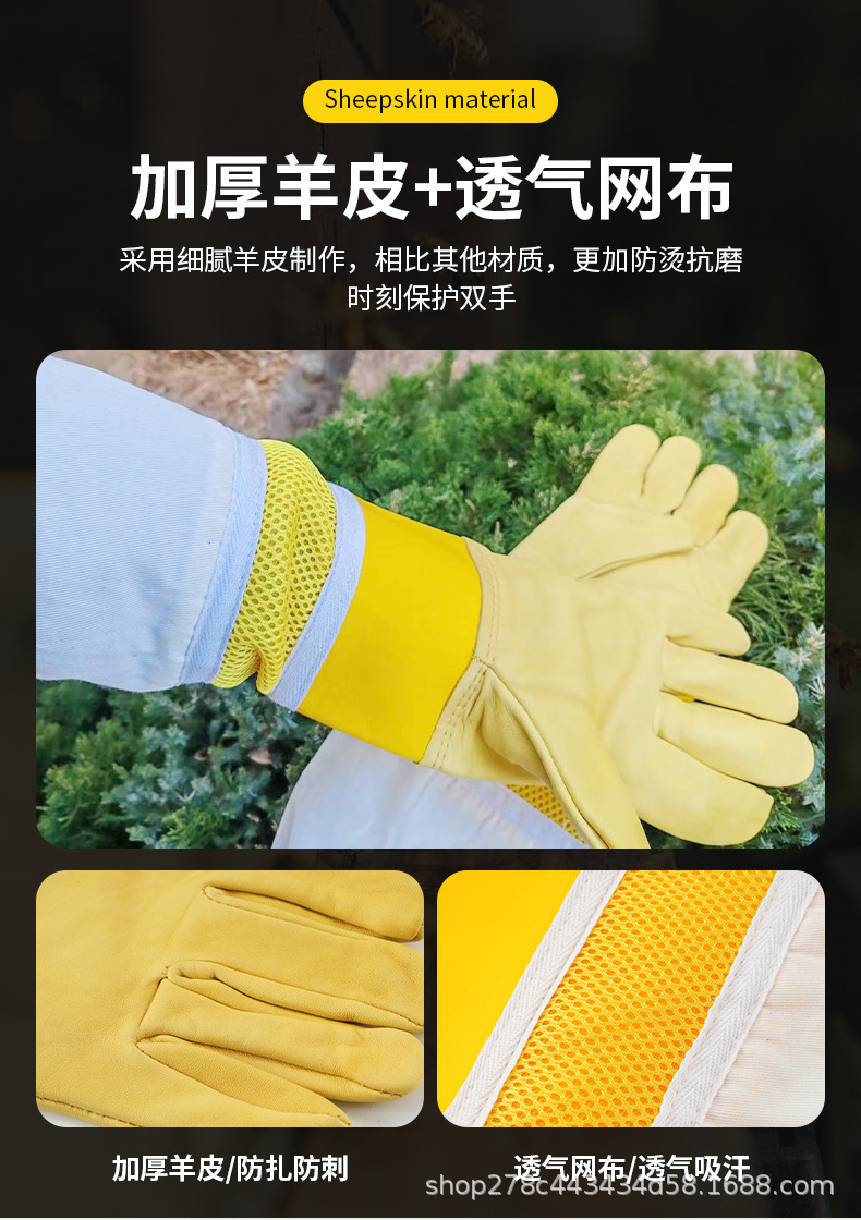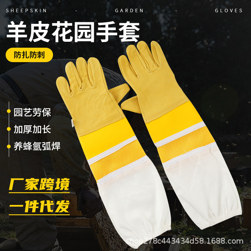 국경 간 양가죽 정원 장갑 두껍고 양봉 보호 정원 노동 보호 장갑 양봉 보호를위한 특수 양가죽 장갑스토어 가기