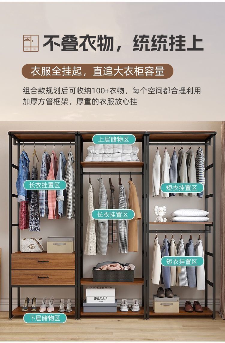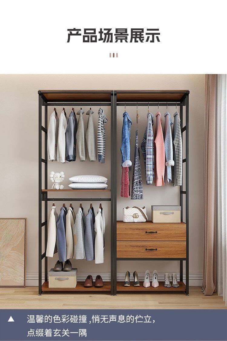 워크 인 코트 랙 가정용 침실 바닥 걸이 서랍 의류 매장 디스플레이 랙 더블 레이어 오픈 옷장