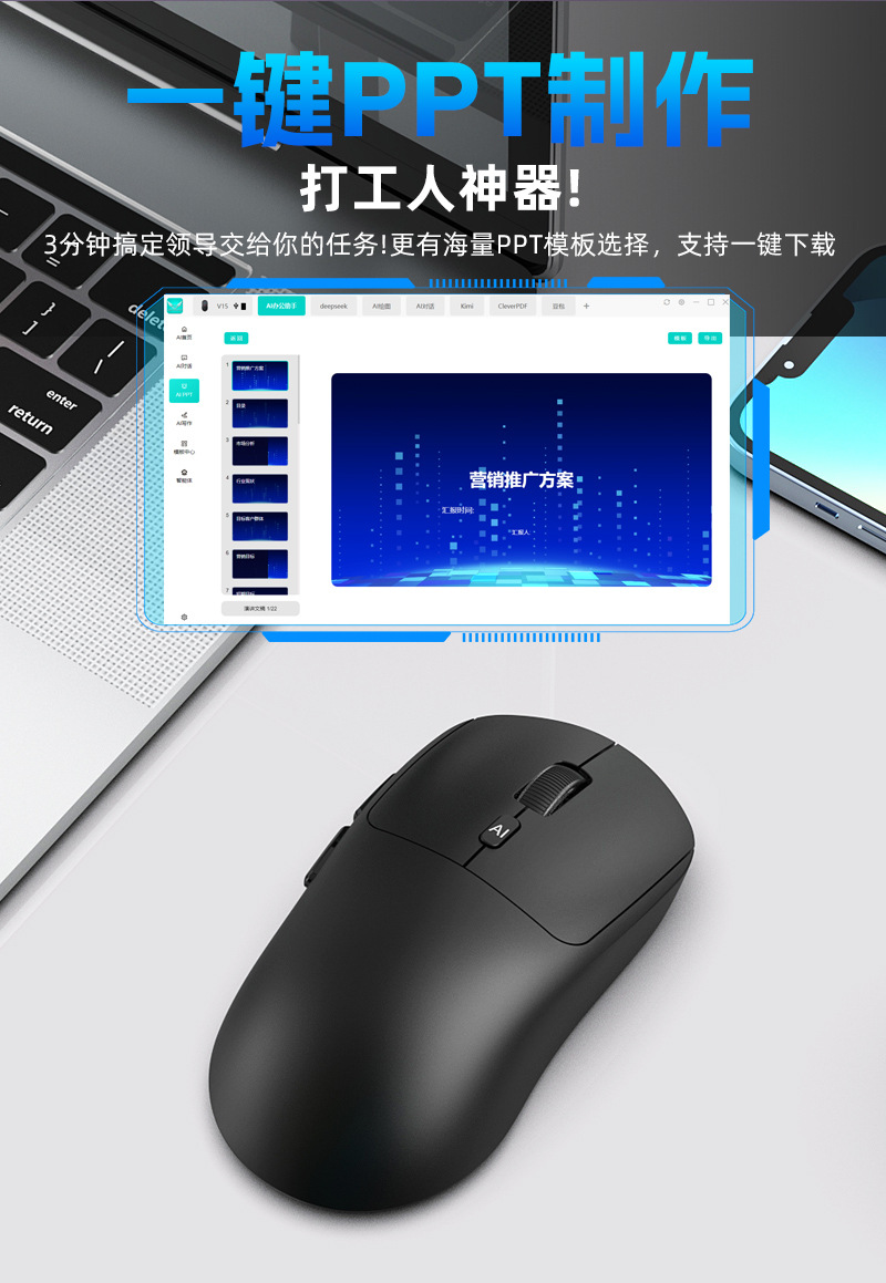 새로운 지능형 AI 음성 마우스 V18 3 모드 번역 음성 제어 음성 쓰기 텍스트 무선 AI 마우스스토어 가기