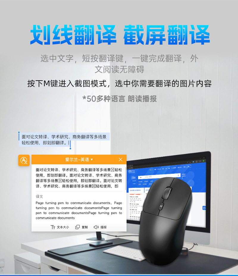 새로운 지능형 AI 음성 마우스 V18 3 모드 번역 음성 제어 음성 쓰기 텍스트 무선 AI 마우스