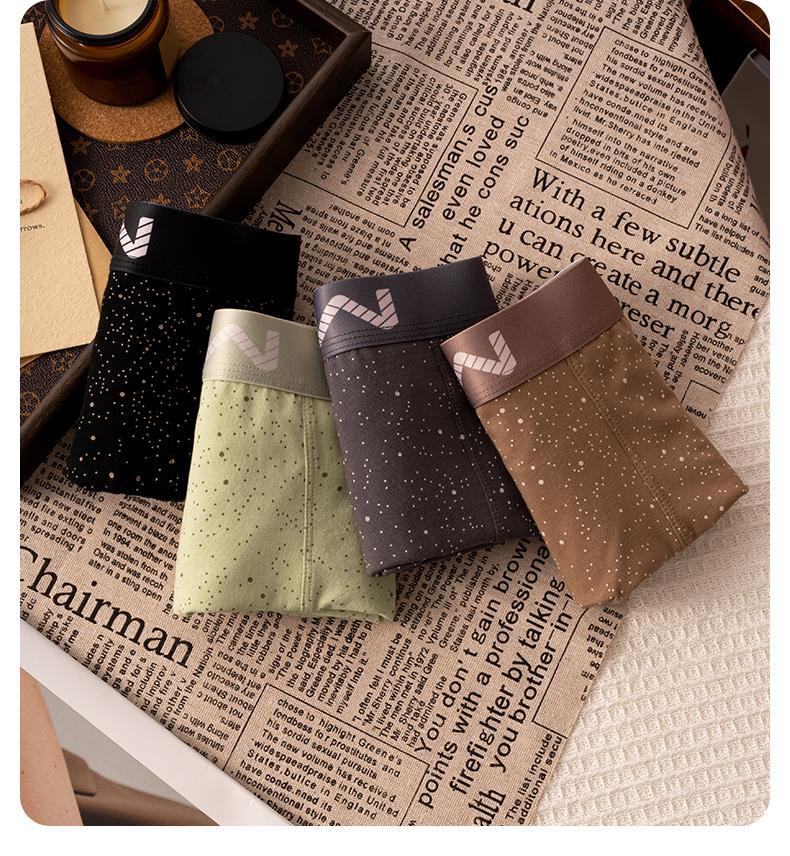 남성 속옷 남성용 복서 코튼 별이 빛나는 하늘 인쇄 항균 크로트 통기성 중간 허리 남성 복서 속옷