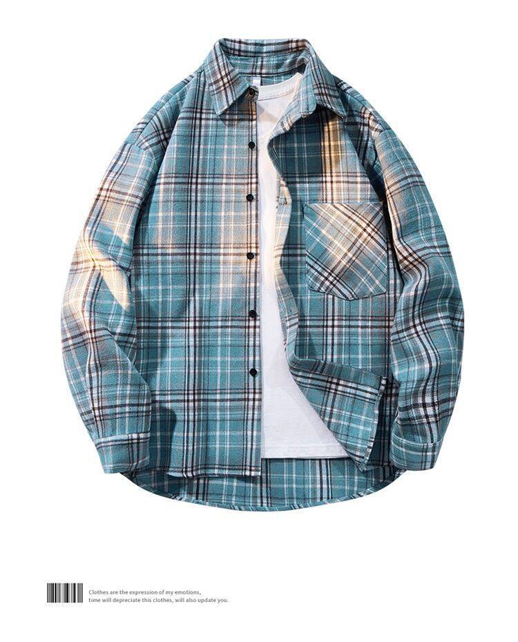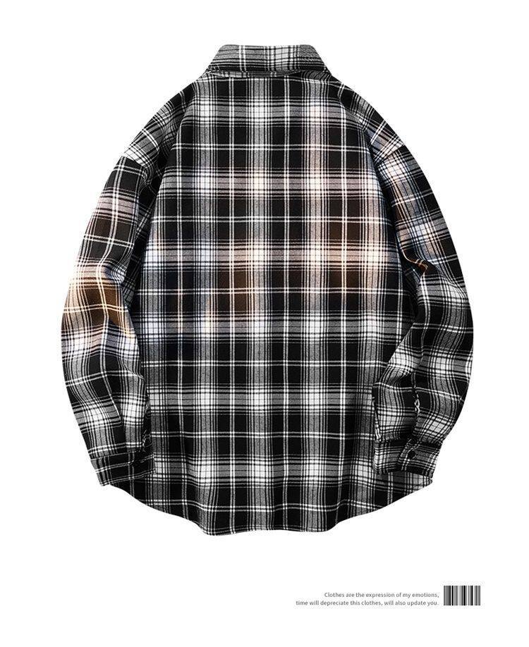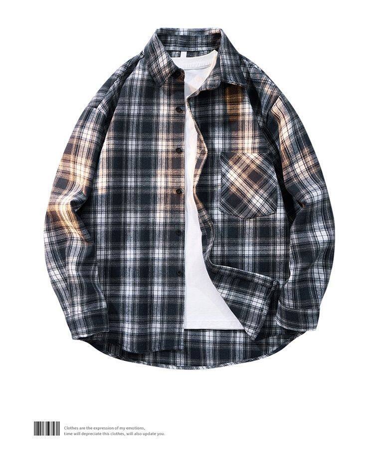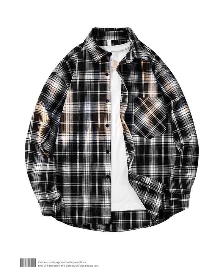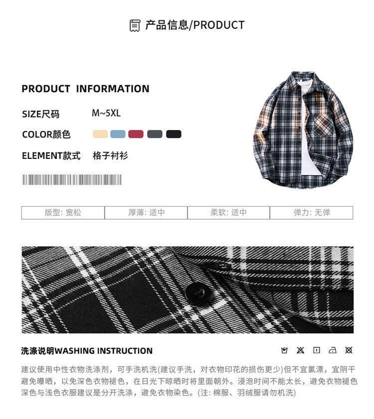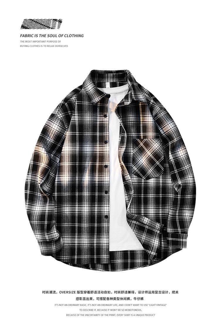 봄 홍콩 스타일 트렌디 한 격자 무늬 셔츠 남성 캐주얼 긴 소매 셔츠 십대 패션 플러스 사이즈 셔츠 코트 남성
