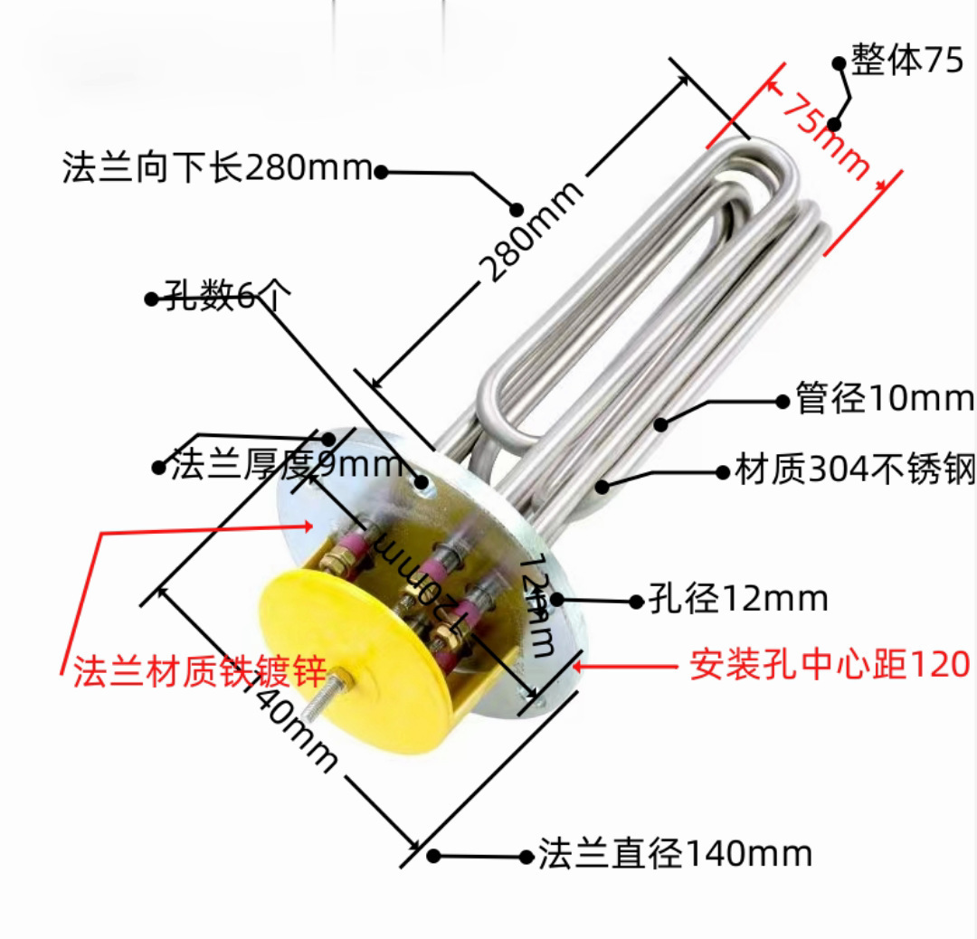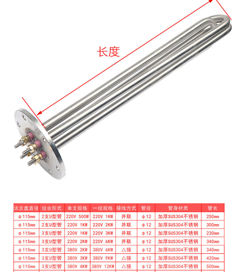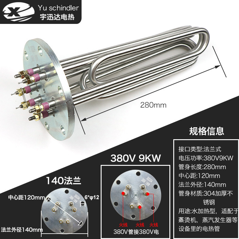 증기 발생기 보일러 가열 튜브 김이 나는 기계 전기 가열 튜브 12/18/24KW 히터 140/150 플랜지스토어 가기
