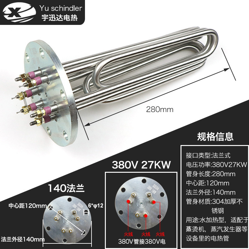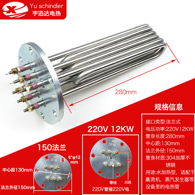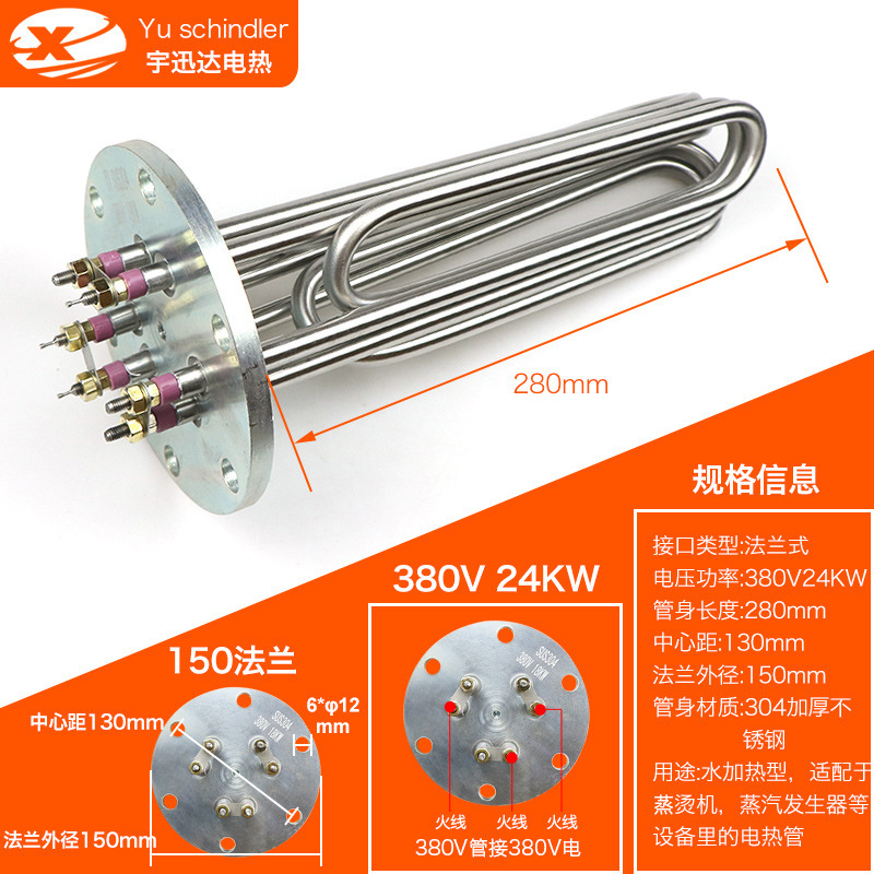 증기 발생기 보일러 가열 튜브 김이 나는 기계 전기 가열 튜브 12/18/24KW 히터 140/150 플랜지