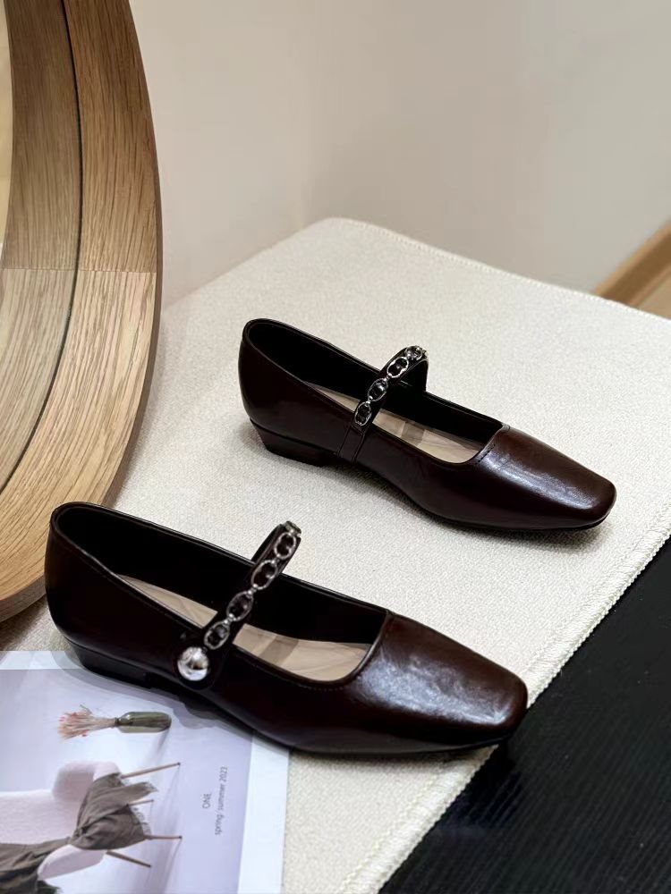 스퀘어 헤드 작은 단일 신발 2025 저발 부드러운 바닥 메리 제인 신발 여성의 새로운 복고풍 부드러운 스타일을 가진 가을 저녁 스커트스토어 가기