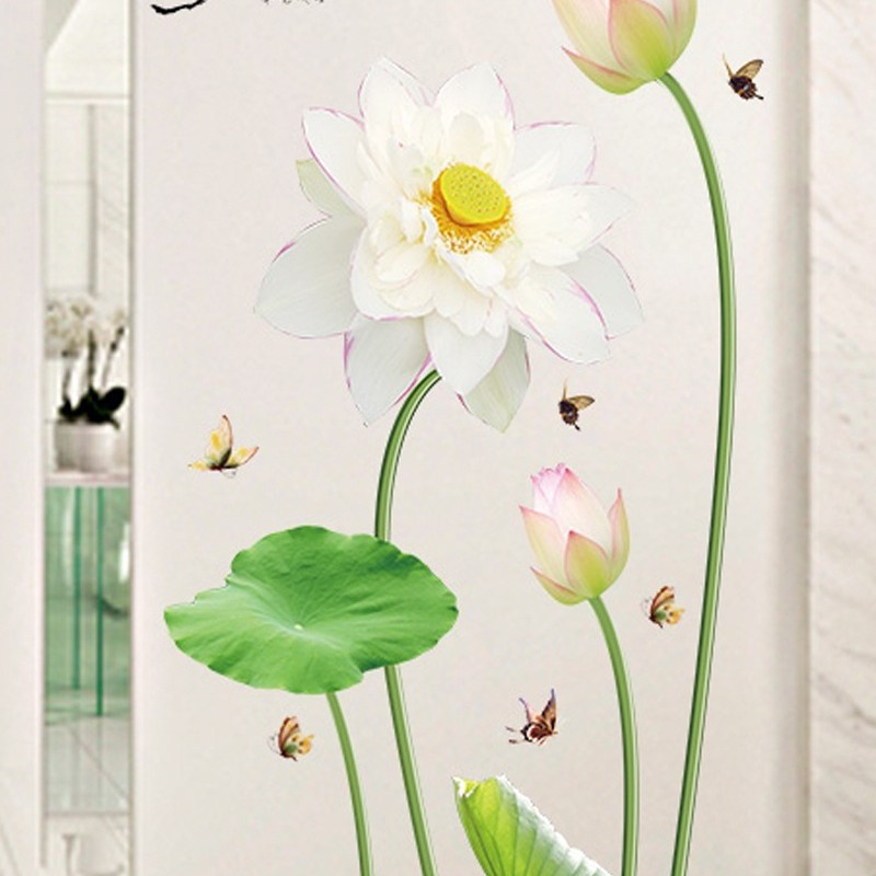 화장실 유리 문 스티커 연꽃 벽 스티커 연꽃 패턴 자체 접착 방수 3D 화장실 문 장식