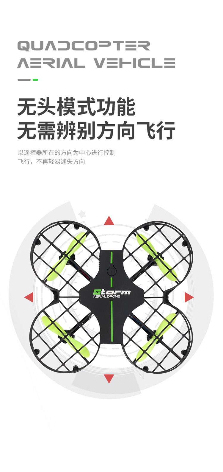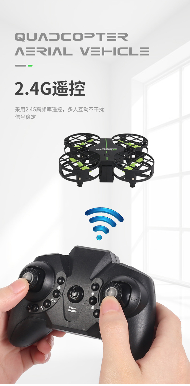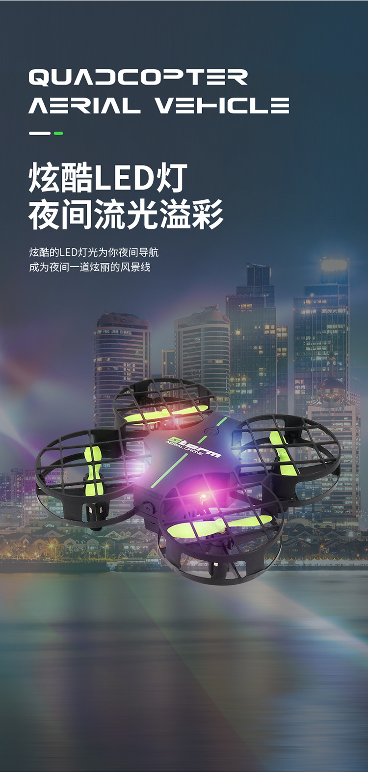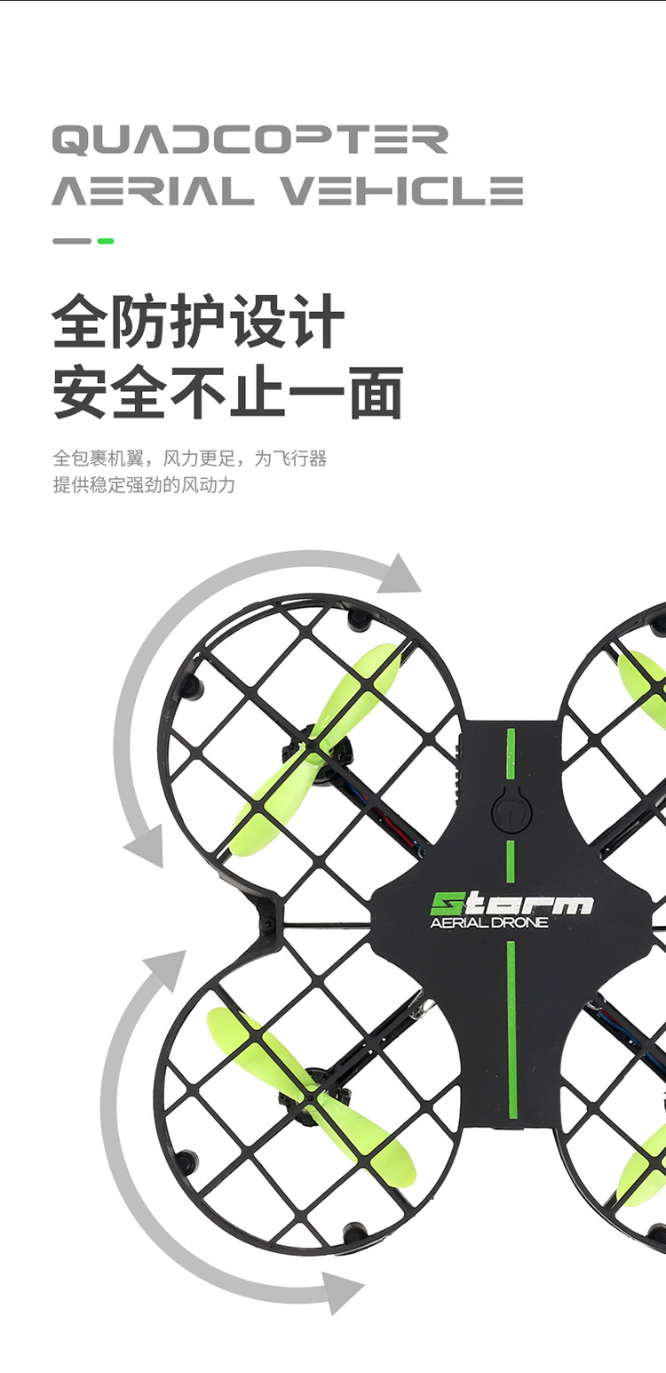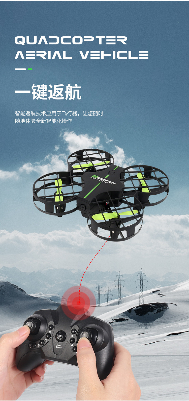 功能描述:功能:前进、后退、上升、下降、左右转、左右侧飞,一键起飞,一键降落,一键急停,无头模式,一键返航,快慢速3档切换功能,一键旋转,一键环绕,360°特技翻滚。