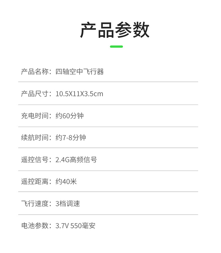 电池参数:机身包3.7V 550毫安 (模块化电池) 遥控器用3粒AAA(不包)