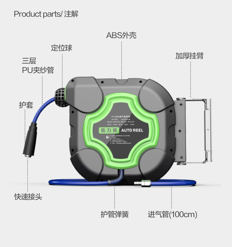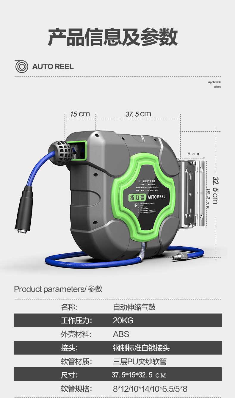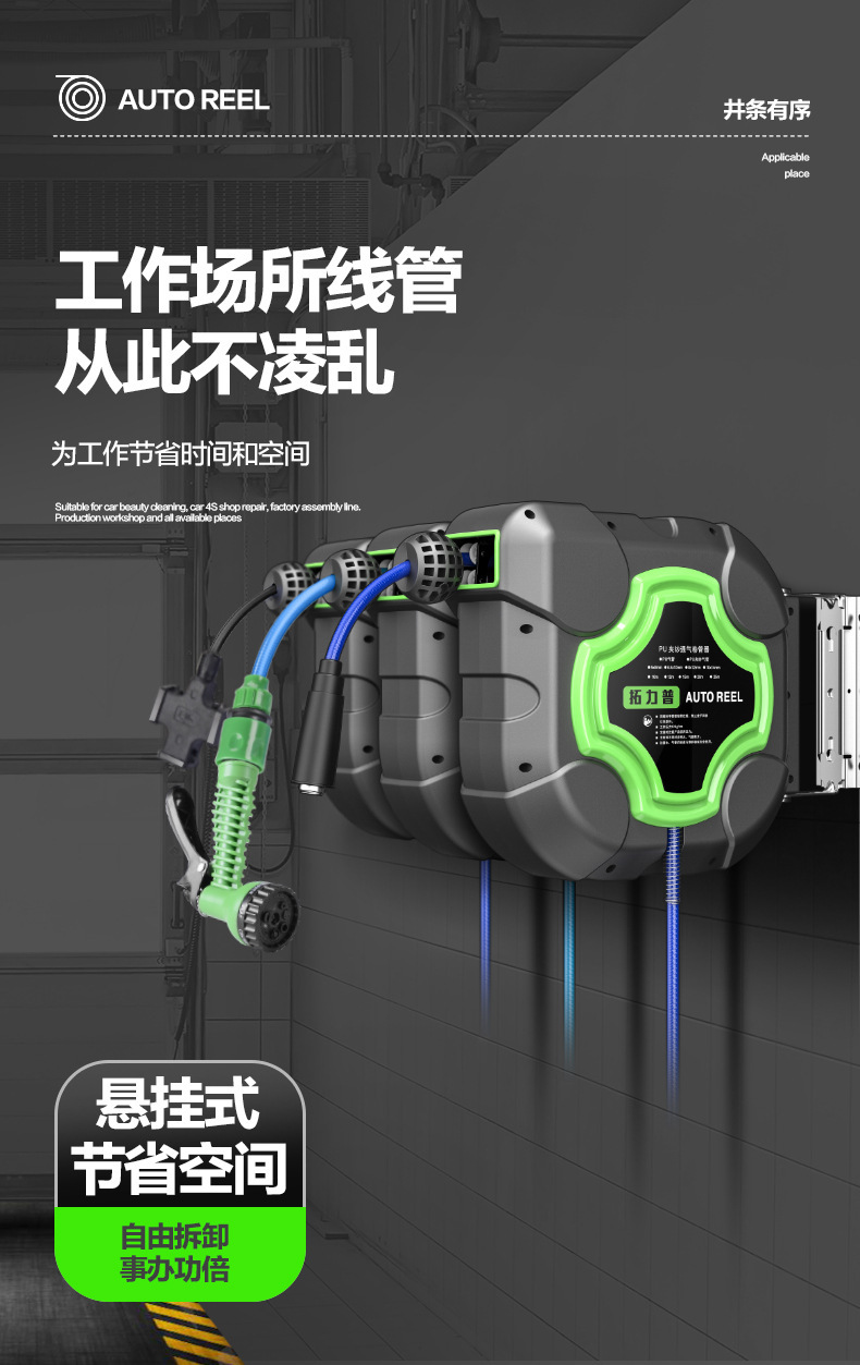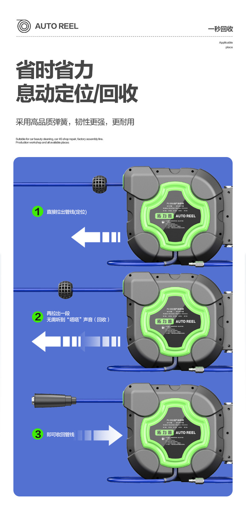에어 드럼 자동 텔레스코픽 튜브 코일 특수 자동차 수리 덕트 에어 파이프 콜레이터 공압 도구 자동차 미용스토어 가기