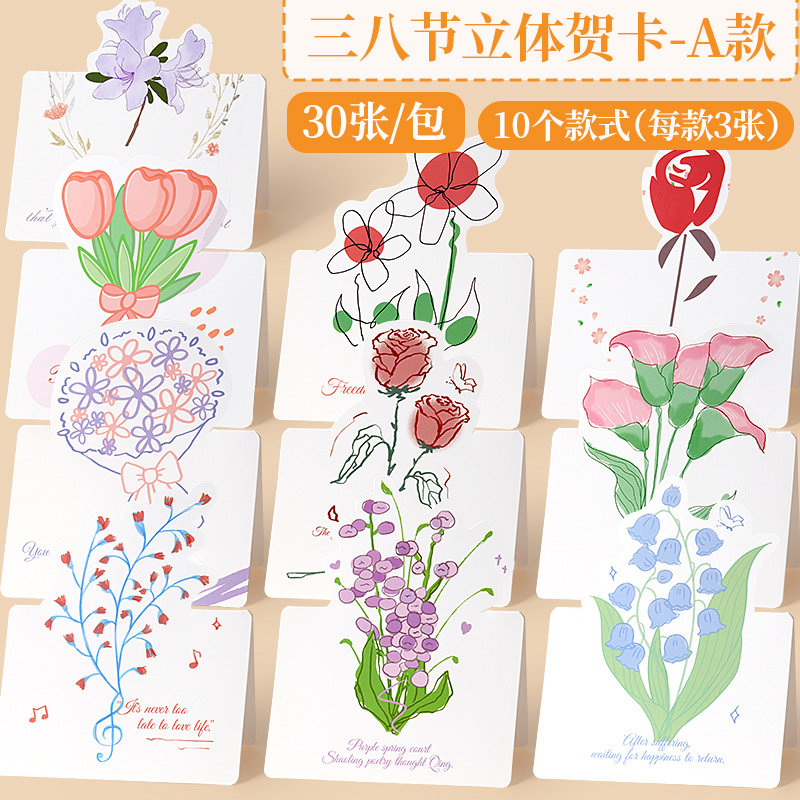 DIY 꽃꽂이 인사말 카드 여성의 날 시뮬레이션 꽃다발 어머니의 날 축복 카드 교사의 날 창조적 인 3 차원 인사말 카드스토어 가기