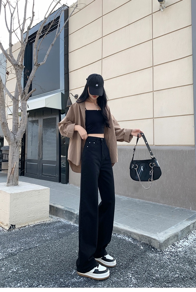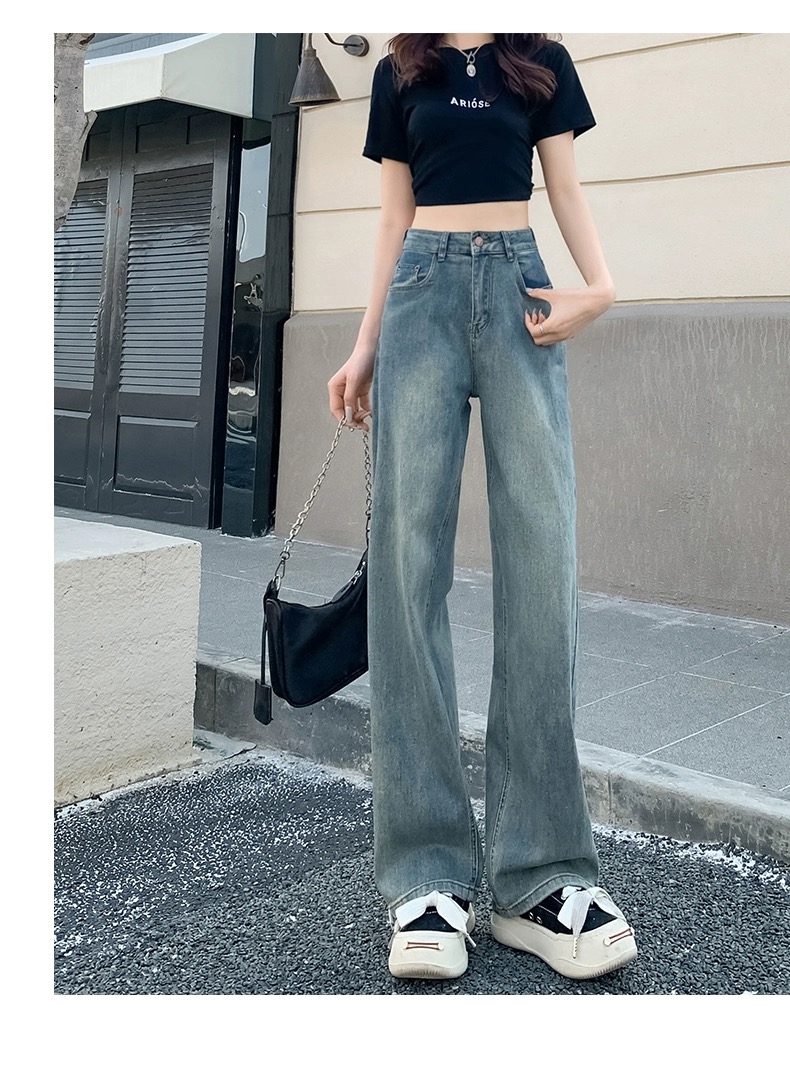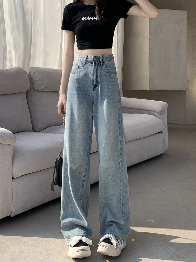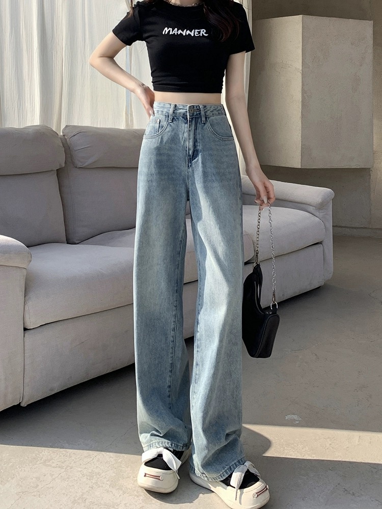 부드러운 청바지 여성의 2025 봄 및 가을 밝은 색상 스트레이트 팬츠 기모 학생들에게 작고 슬림 한 적합스토어 가기