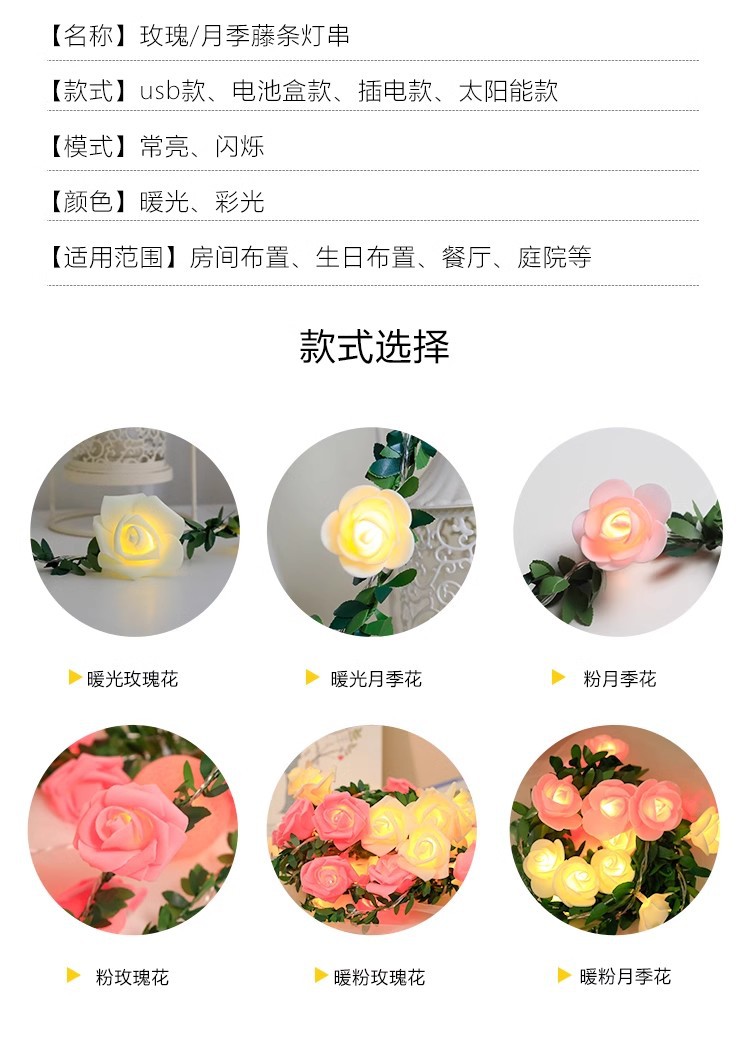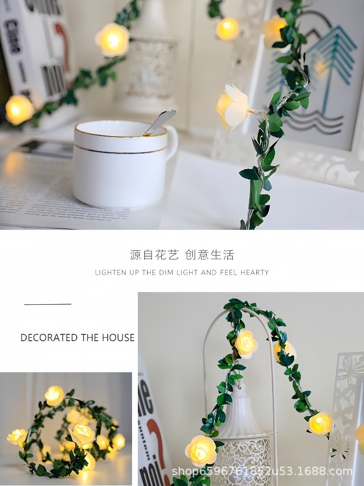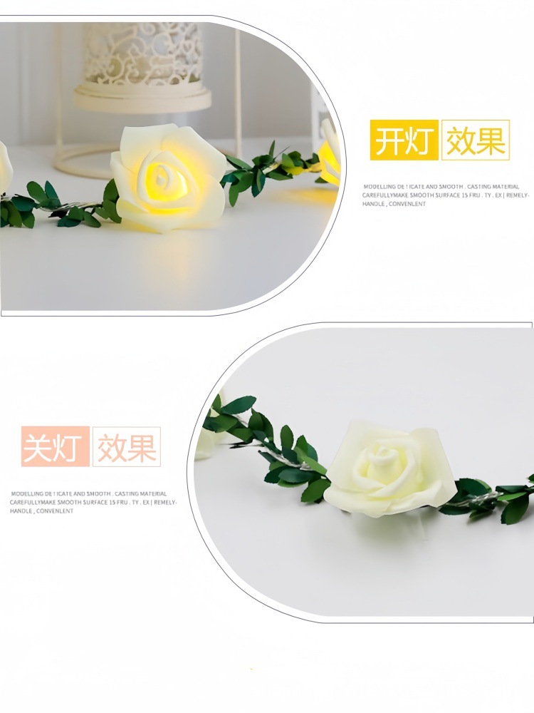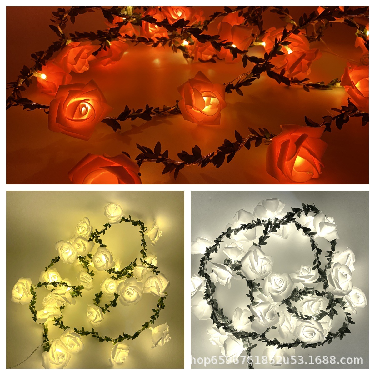 • 20등 LED 스트링 조명 3m 등나무 사출 성형 장미 꽃 색상
