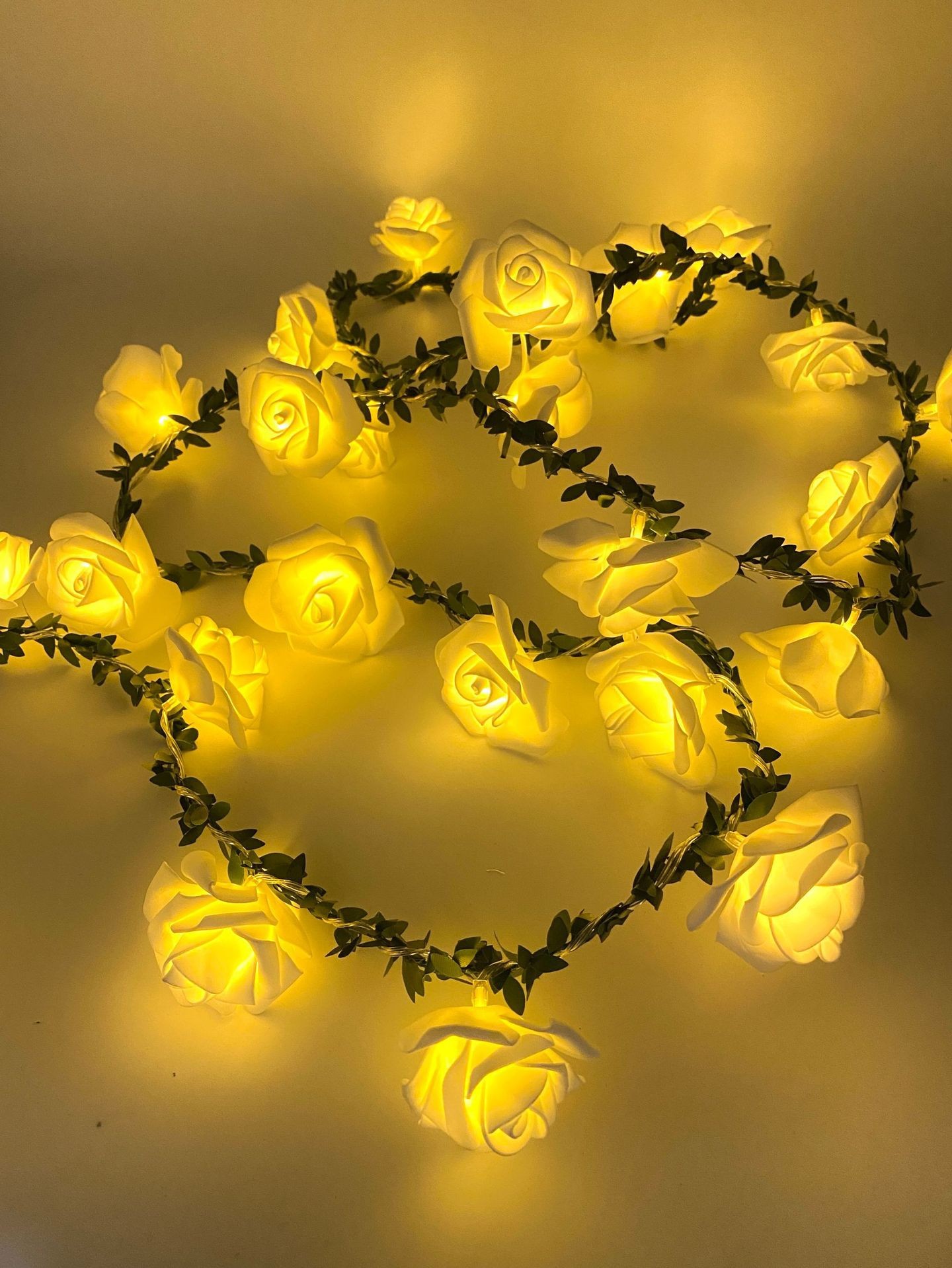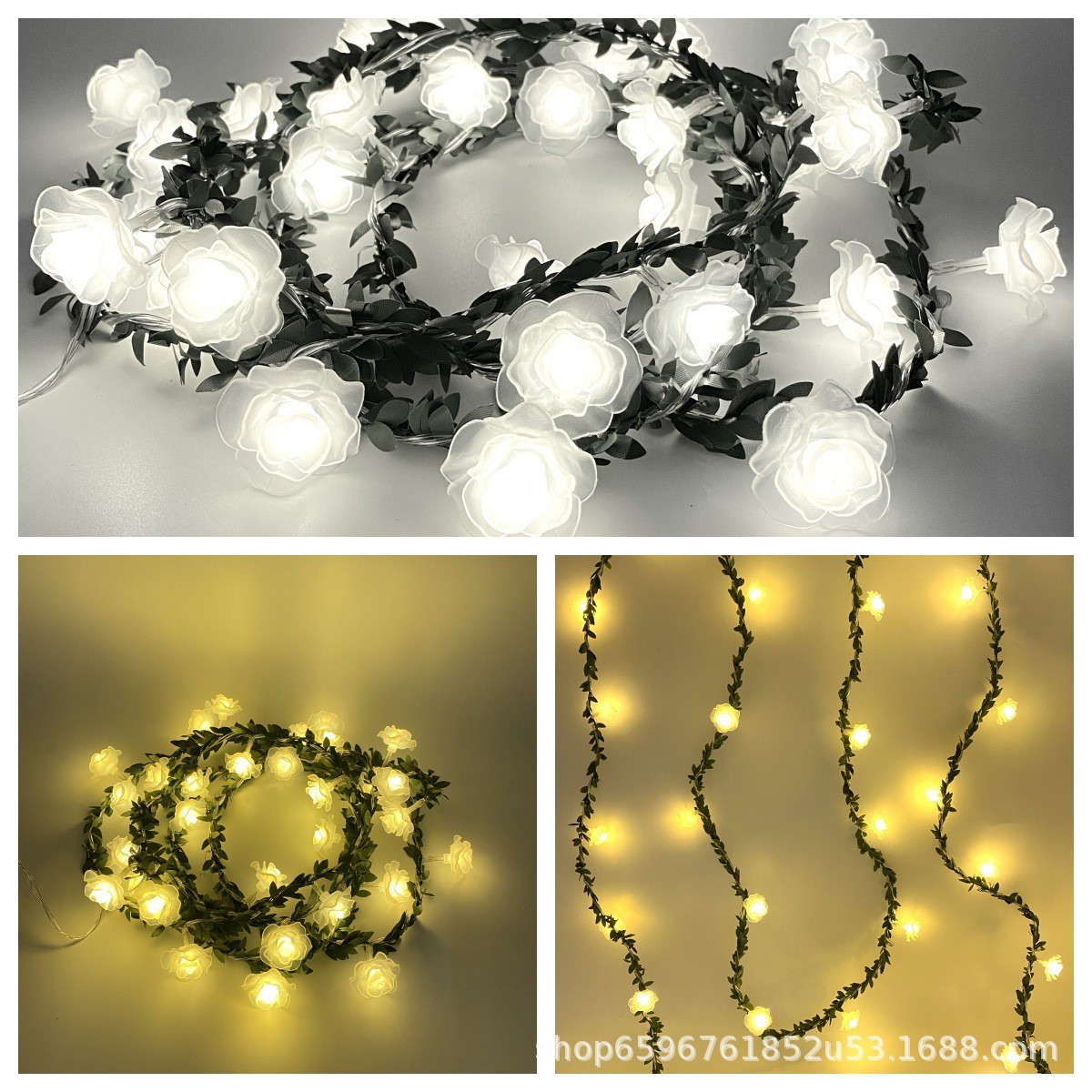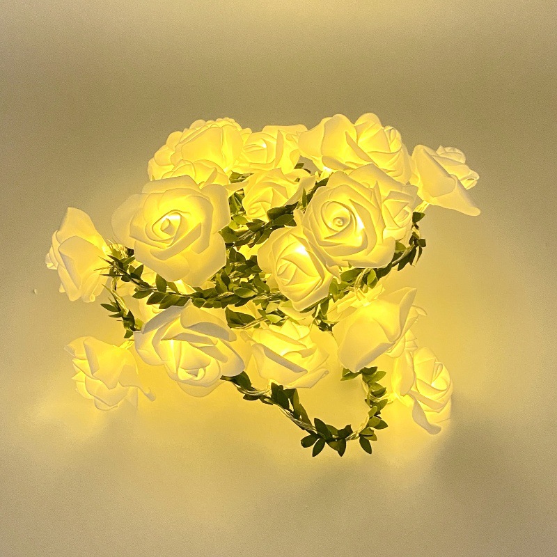 • 20등 LED 스트링 조명 3m 등나무 사출 성형 장미 꽃 따뜻한 백색광