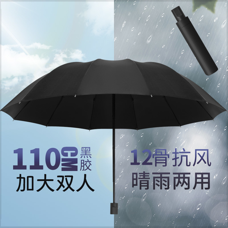 대형 우산 12 뼈 대형 3 폴딩 유니섹스 사업 3 인승 비 눈 듀얼 사용 방지 폭풍 태양 우산스토어 가기