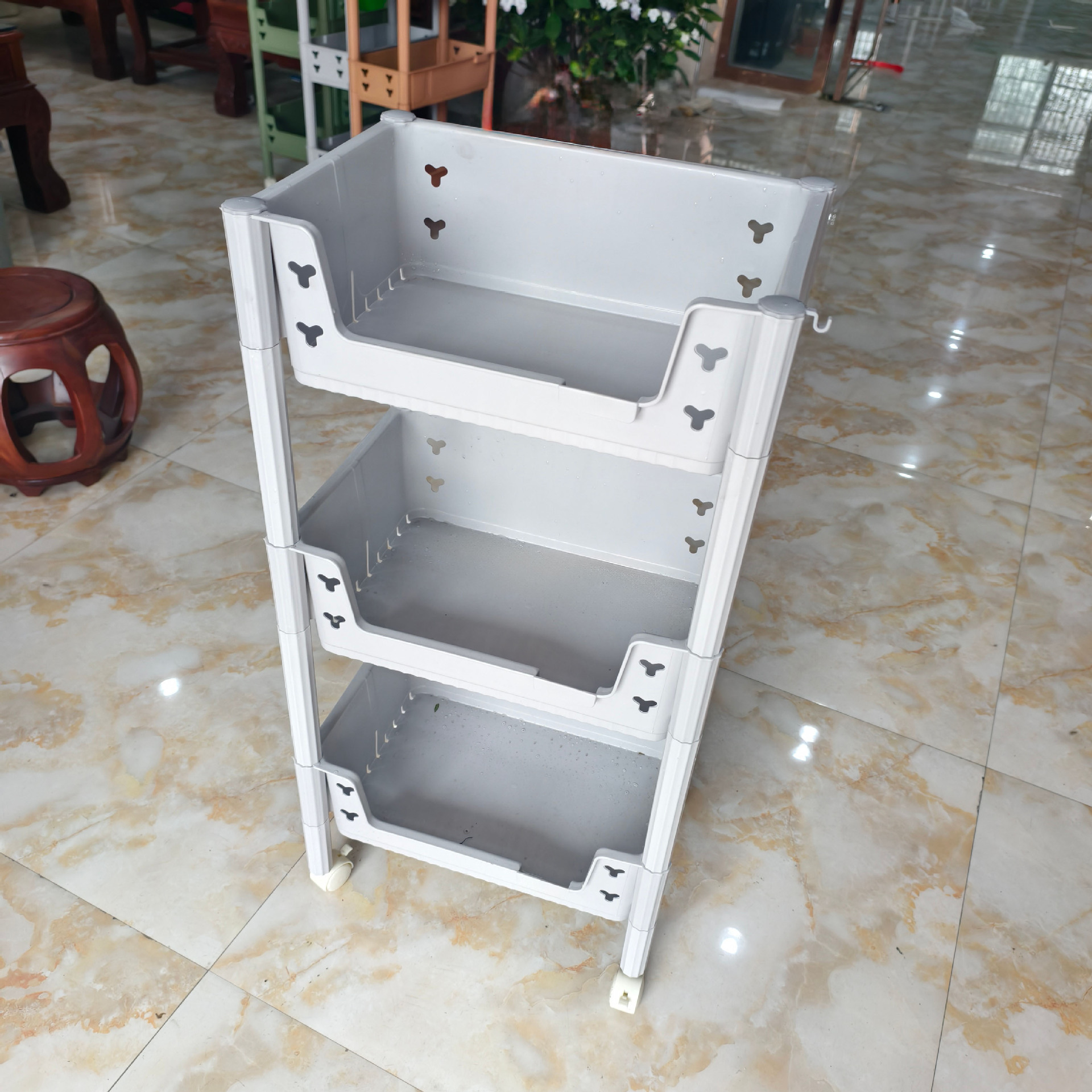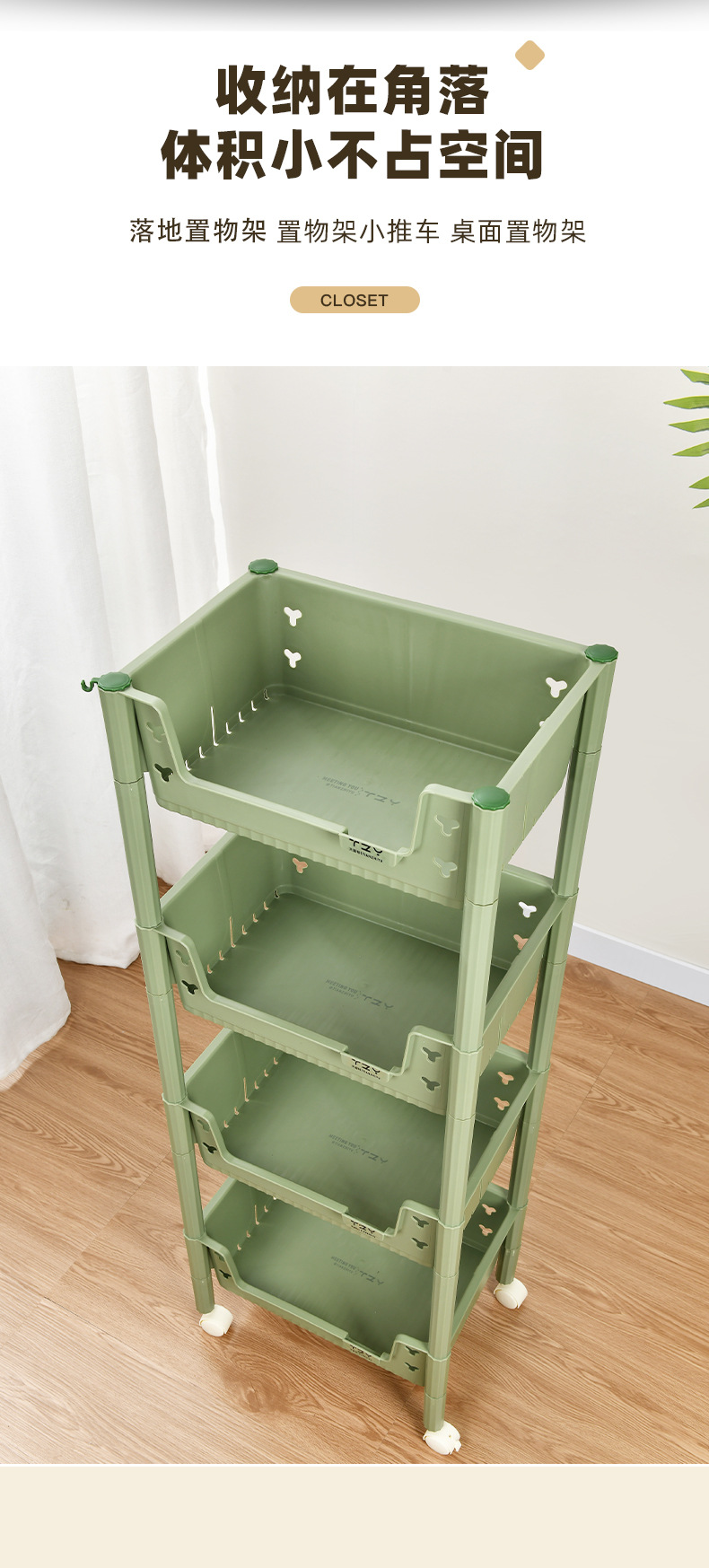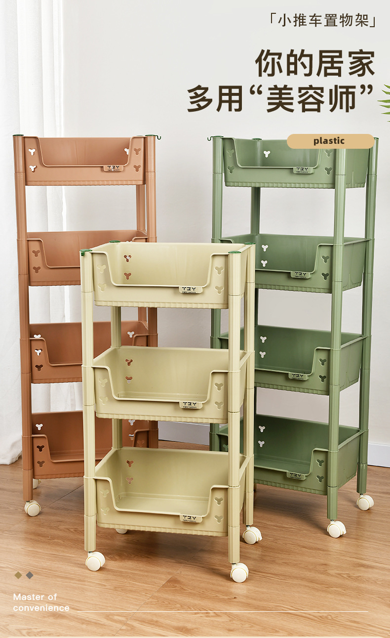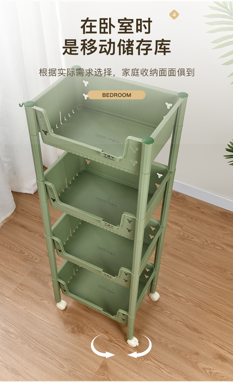 바퀴가 달린 플라스틱 책 및 스낵 보관함, 바닥에서 천장까지 이어지는 테이블 옆 가방 보관함, 테이블 밑 이동식 트롤리 보관함, 다층스토어 가기