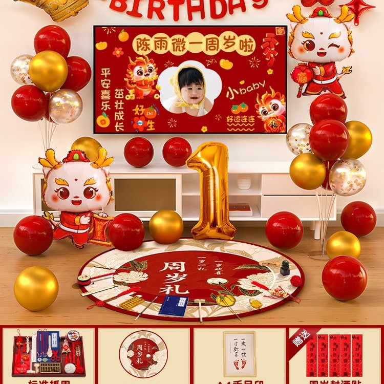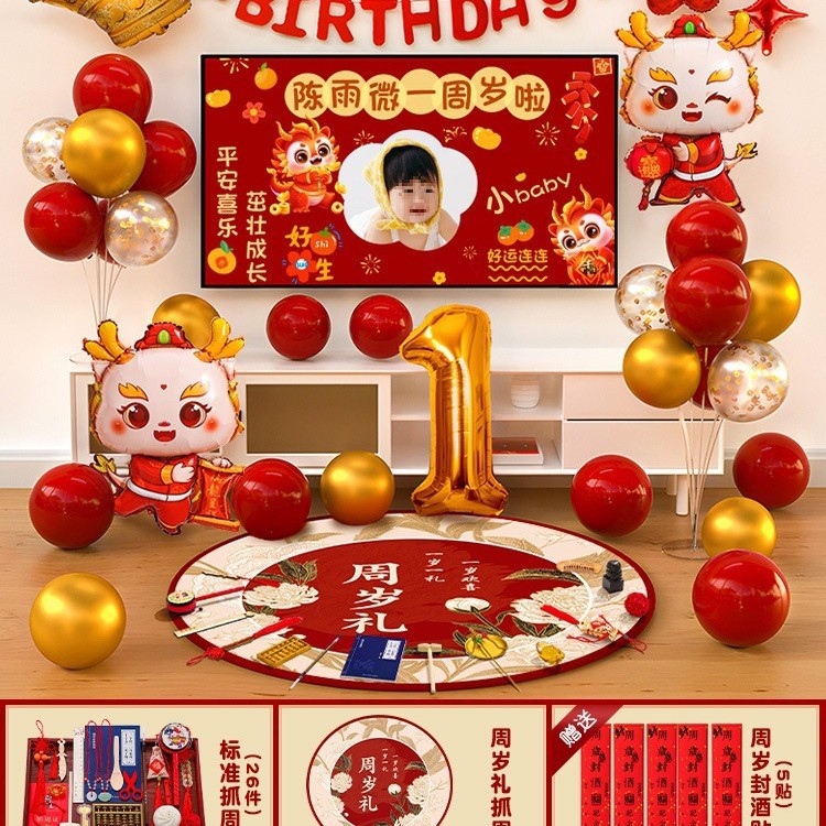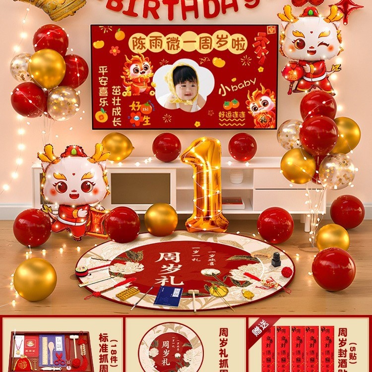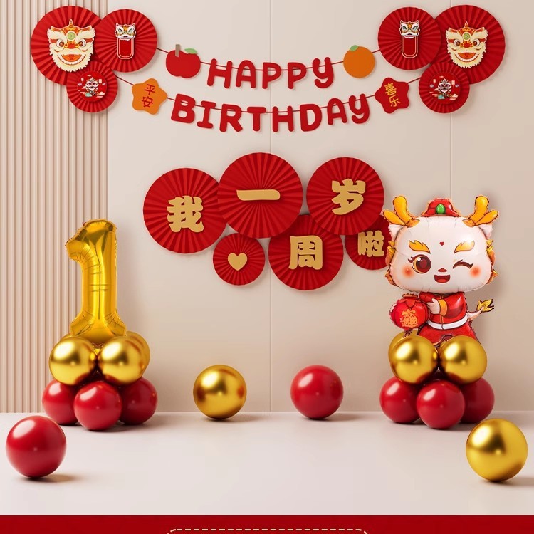 드래곤 베이비 첫 번째 생일 장식 잡아 주간용품 1 년 첫해 행사 장면 소품 여성 분위기 남성 연회