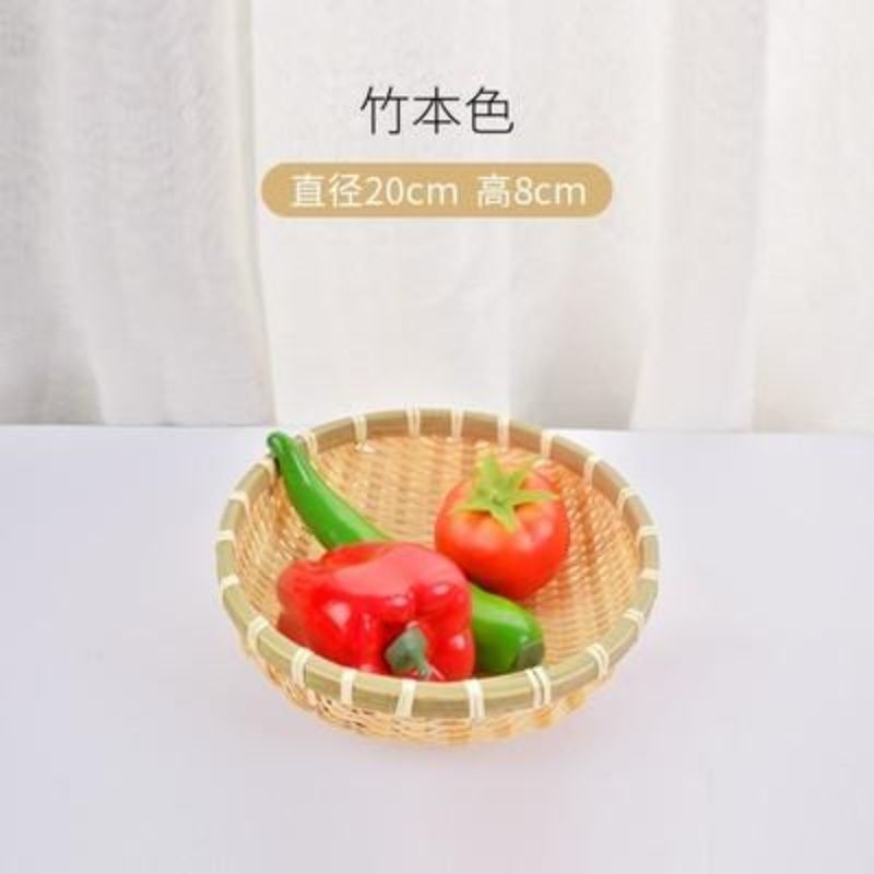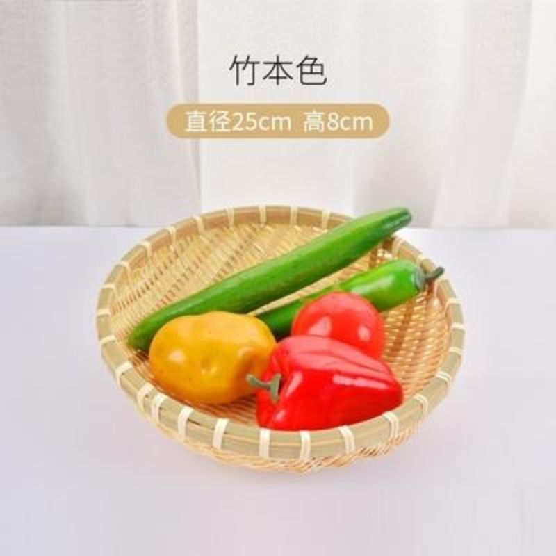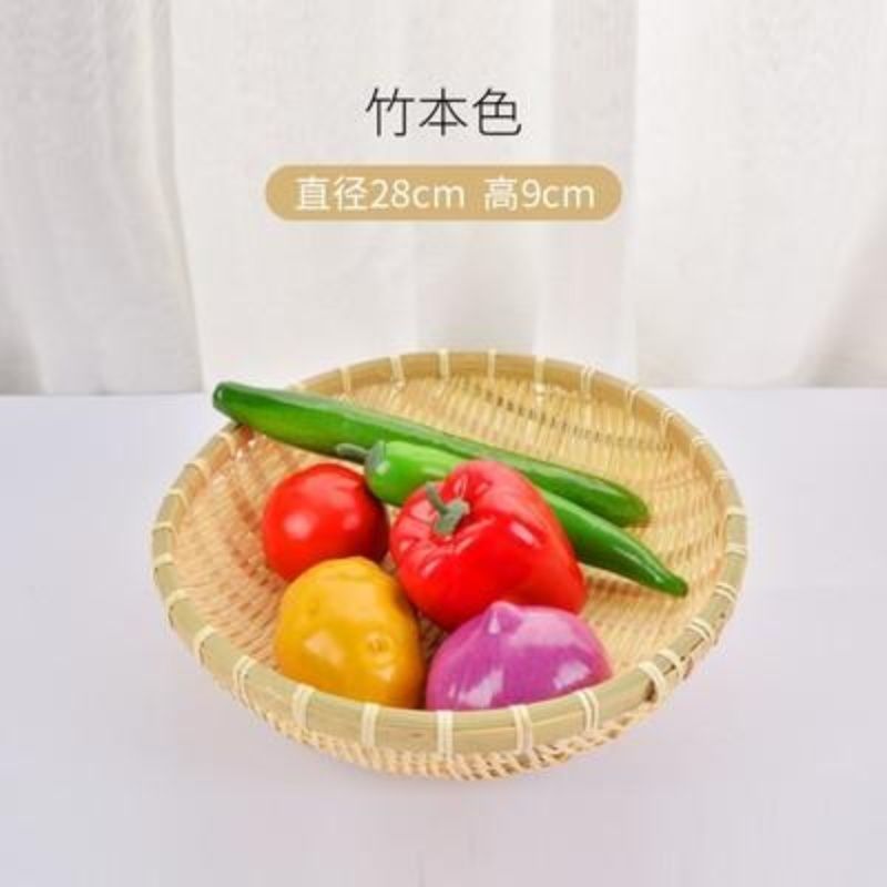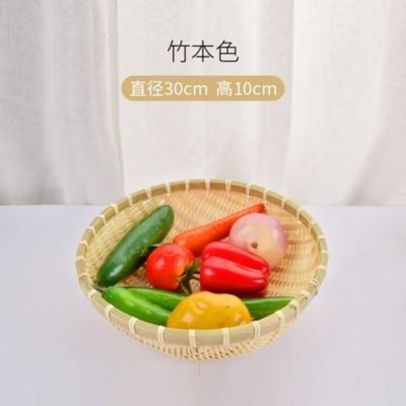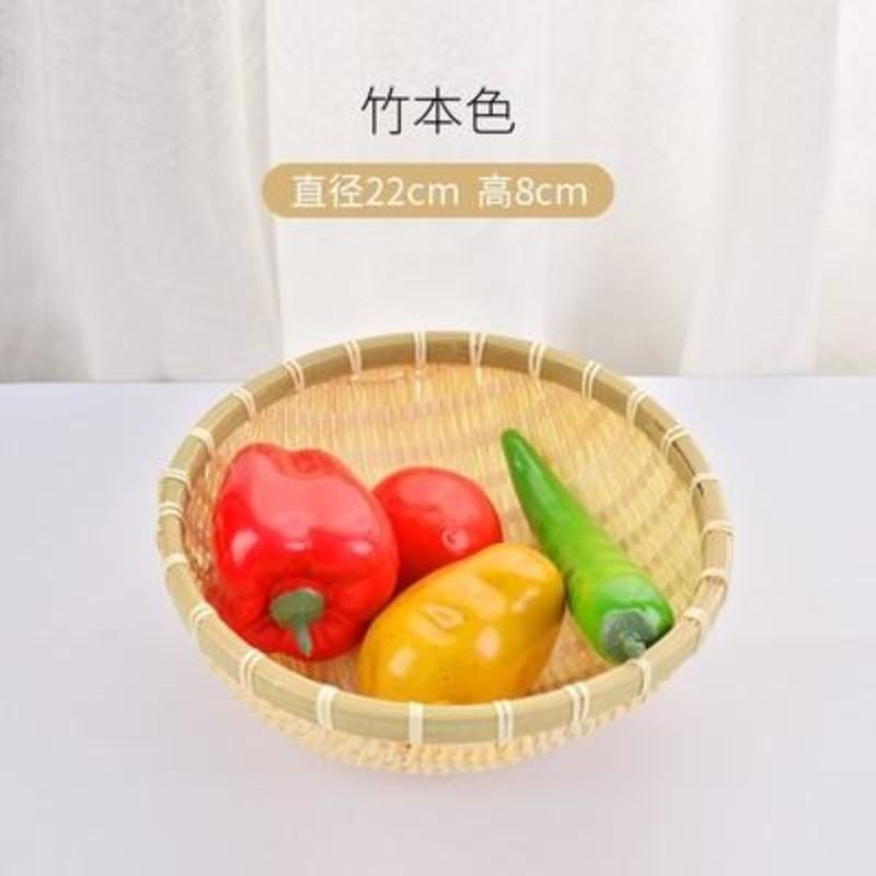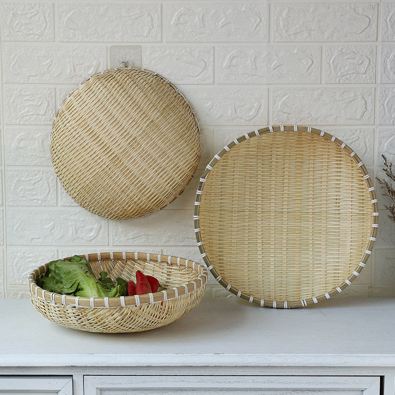 대나무 더스트 팬 대나무 짠 제품 라운드 찐 빵 저장 대나무 바구니 손으로 짠 가정용 과일 바구니 야채 바구니 배수 체