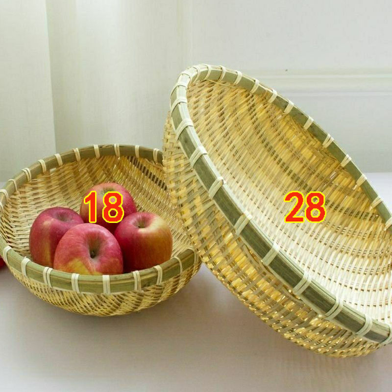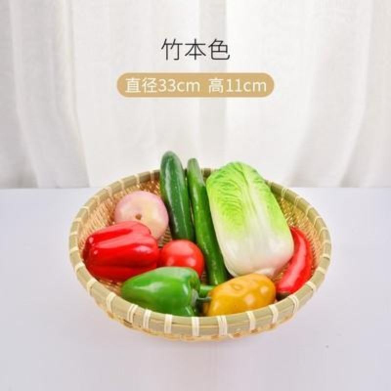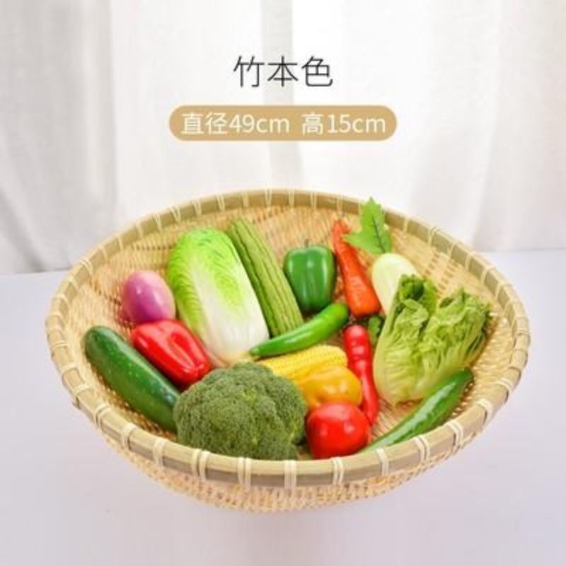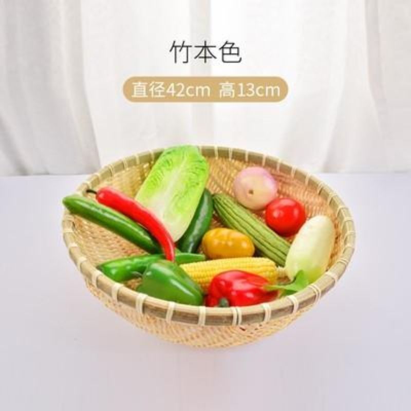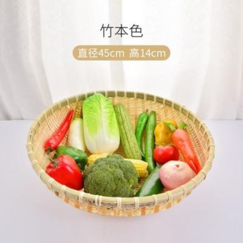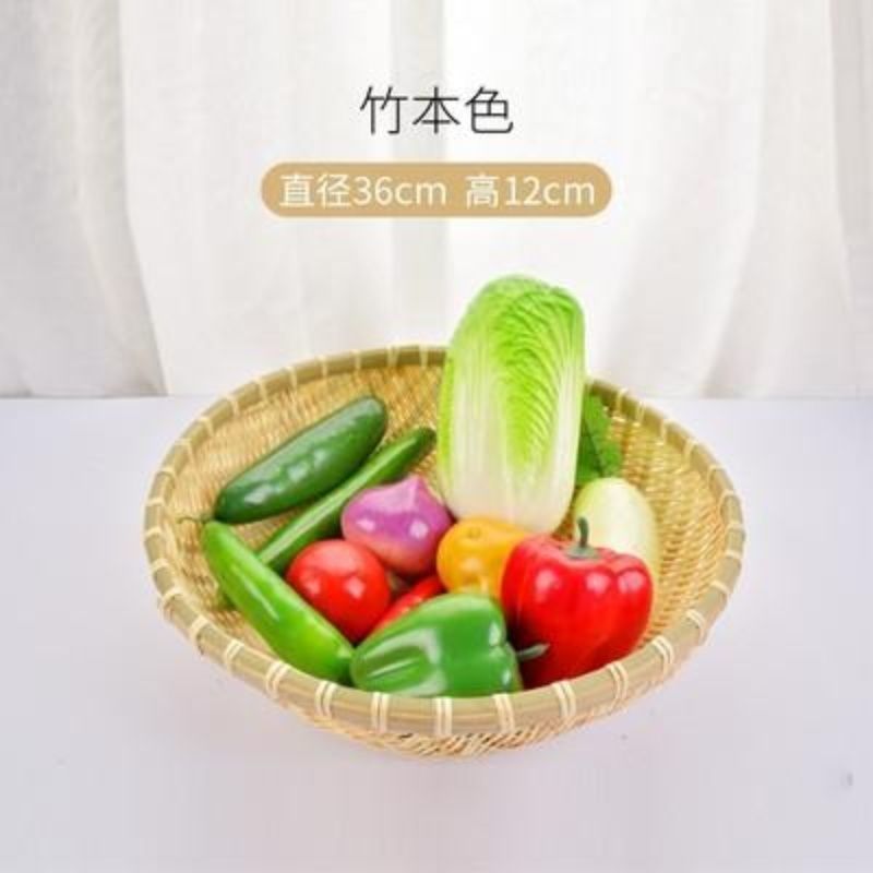 대나무 더스트 팬 대나무 짠 제품 라운드 찐 빵 저장 대나무 바구니 손으로 짠 가정용 과일 바구니 야채 바구니 배수 체