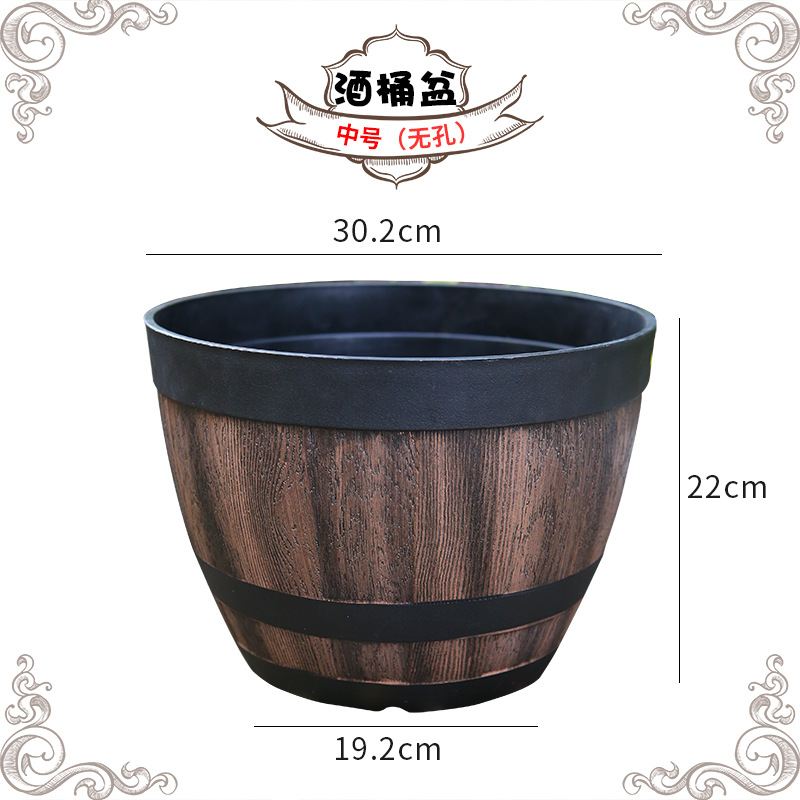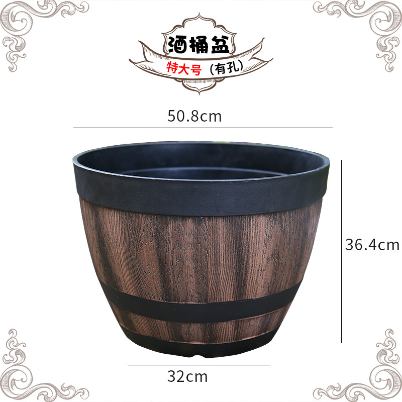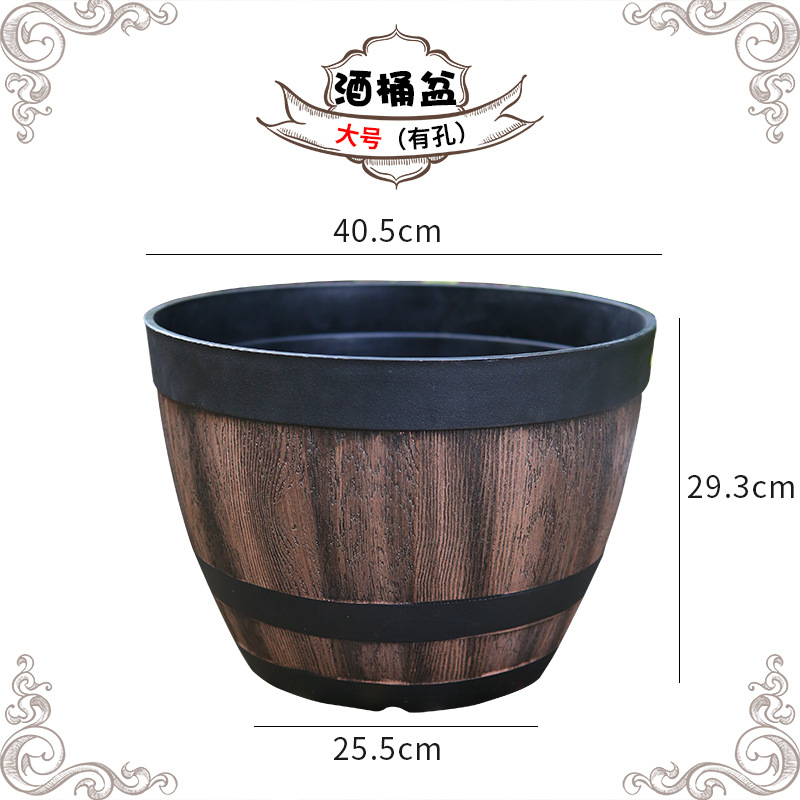 두꺼운 수지 와인 배럴 꽃 냄비 초대형 유럽 스타일 가든 빈티지 나무 배럴 구멍 물 연꽃 그릇 꽃 냄비