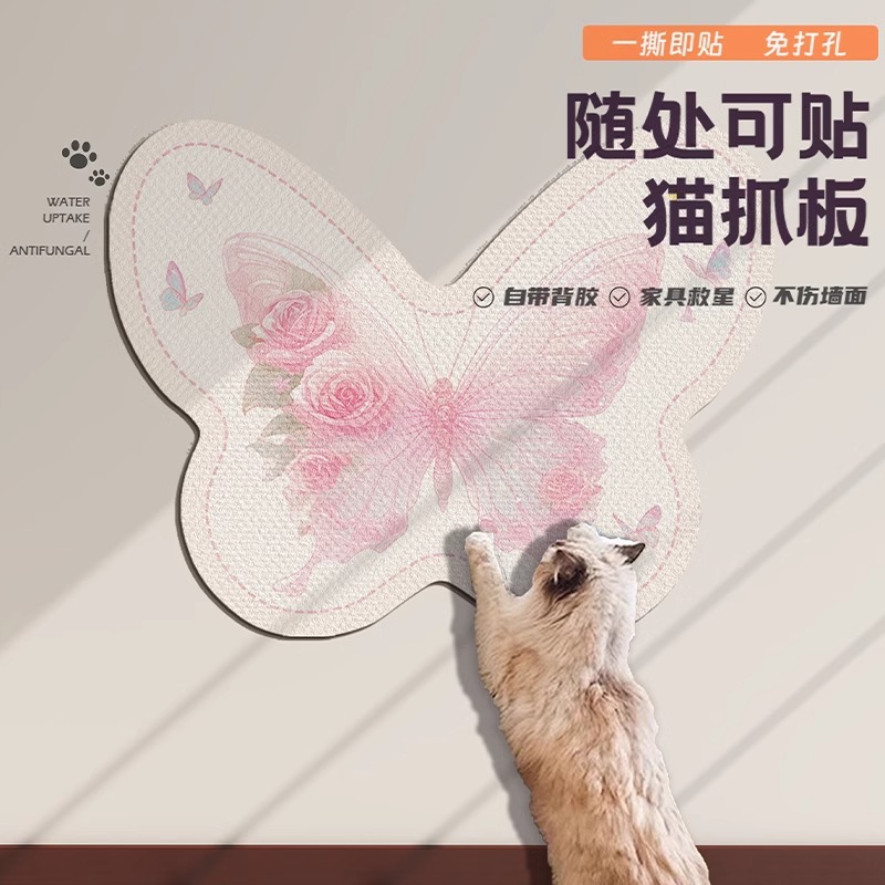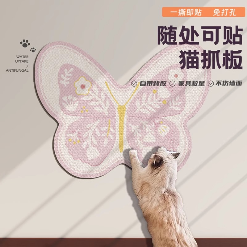 특수 모양의 고양이 스크래치 보드 내마모성 부스러기를 붙여 넣을 수 있습니다 벽 스티커 고양이 장난감 발톱 보드 나비 벽지 소파 보호 패드