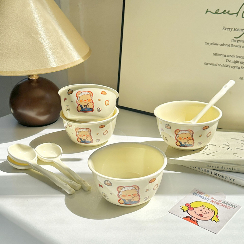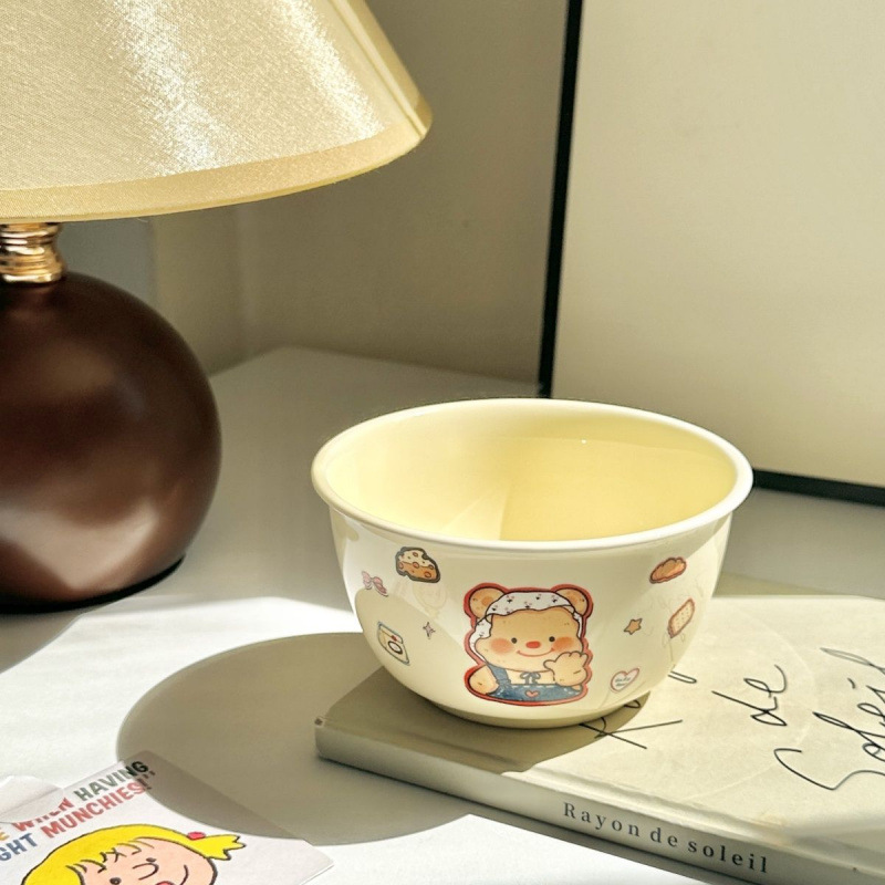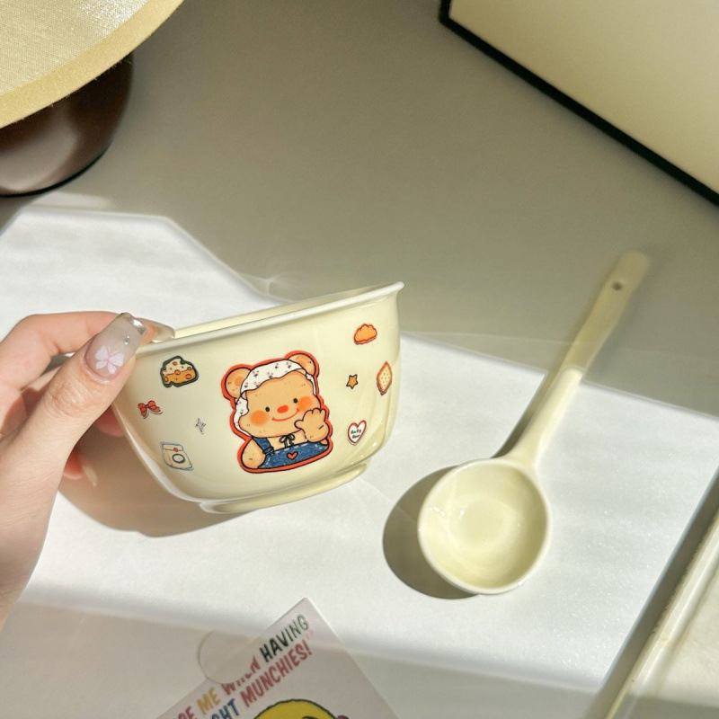 만화 크림 베어 국수 높은 아름다움 가치 귀여운 기숙사 가정용 식기 세라믹 어린이 소녀 밥 그릇