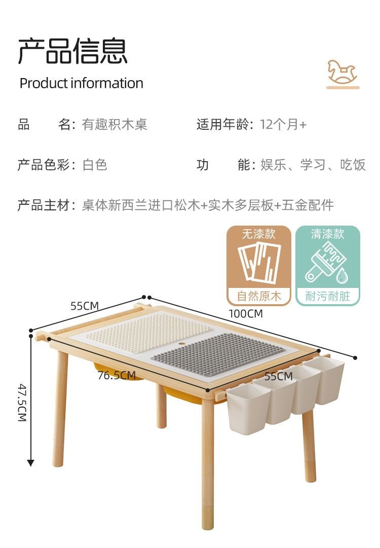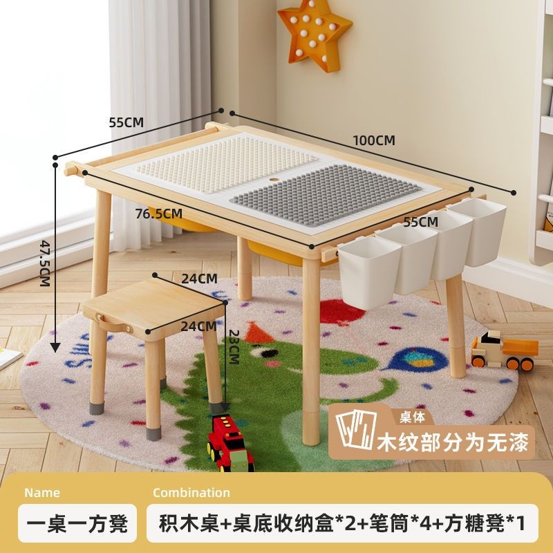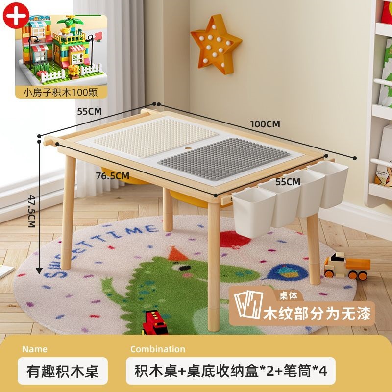 • 도색되지 않은 원목 싱글 테이블/수납 + 집 빌딩 블록 100개 포함