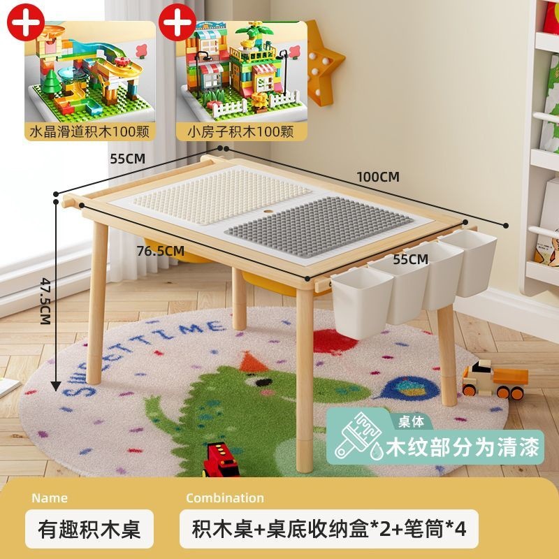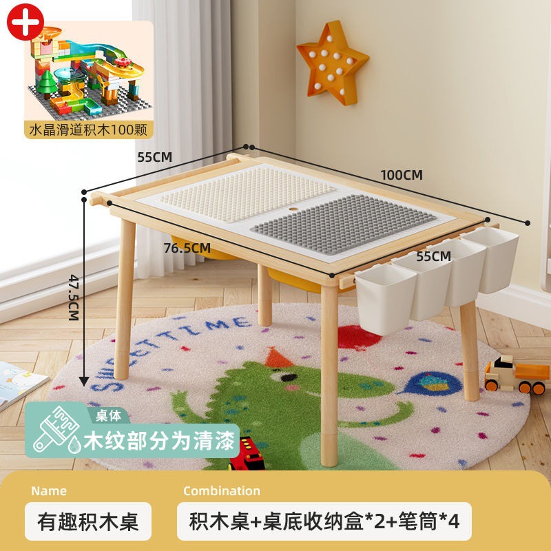 • 광택 처리된 원목 싱글 테이블/수납 + 집 빌딩 블록 100개