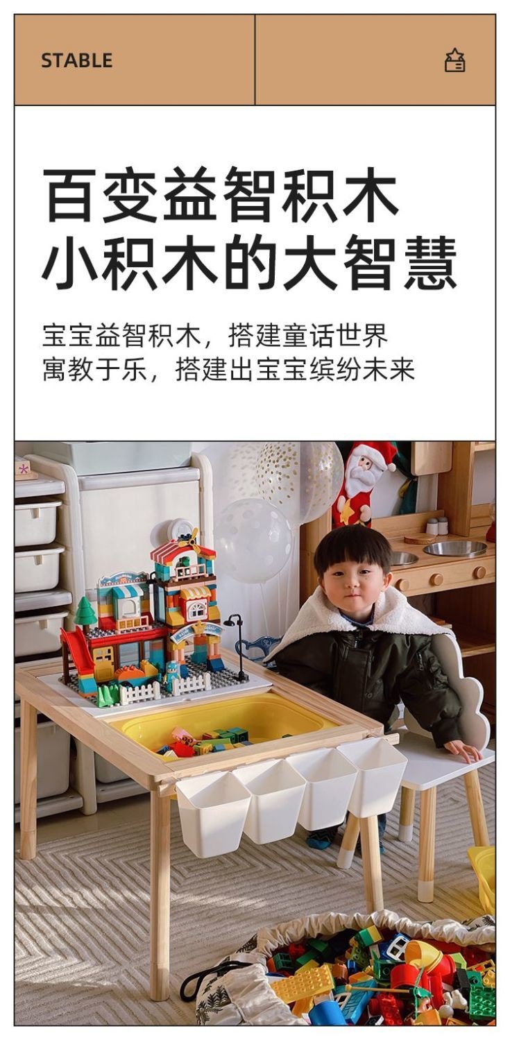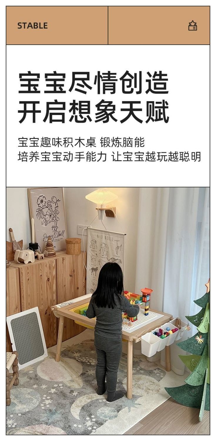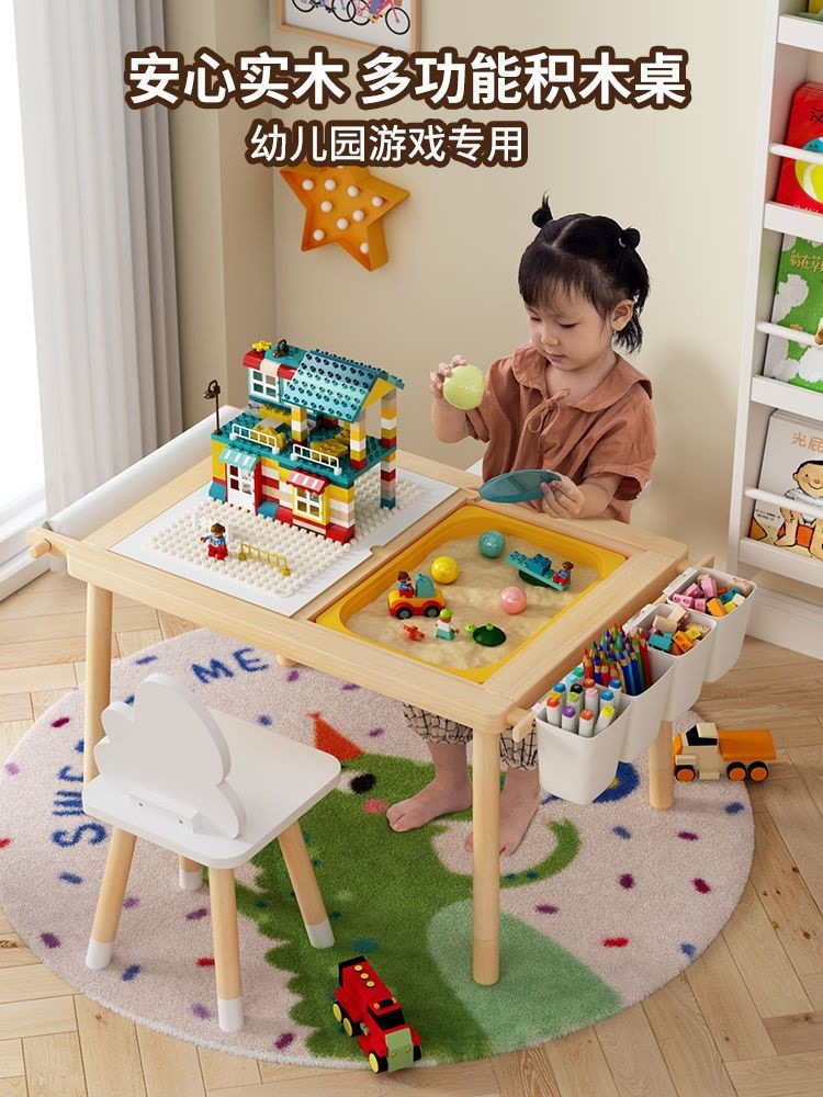 단단한 나무 어린이 땅콩 테이블 유치원 빌딩 블록 게임 장난감 테이블 리프팅 아기 학습 그림 쓰기 책 테이블스토어 가기