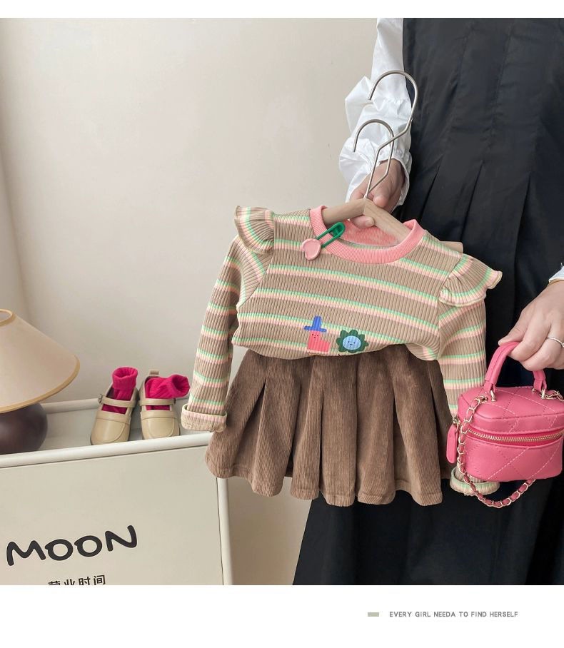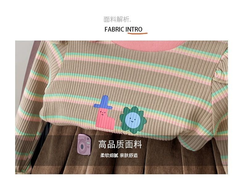 봄과 가을 소녀 티셔츠 아기 세련 된 어린이 성격 유행 브랜드 한국 컬러 매칭 줄무늬 만화 플라잉 슬리브 베이스 셔츠
