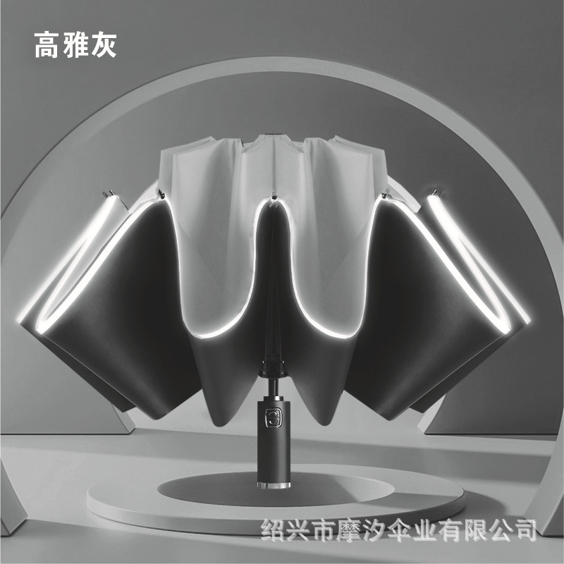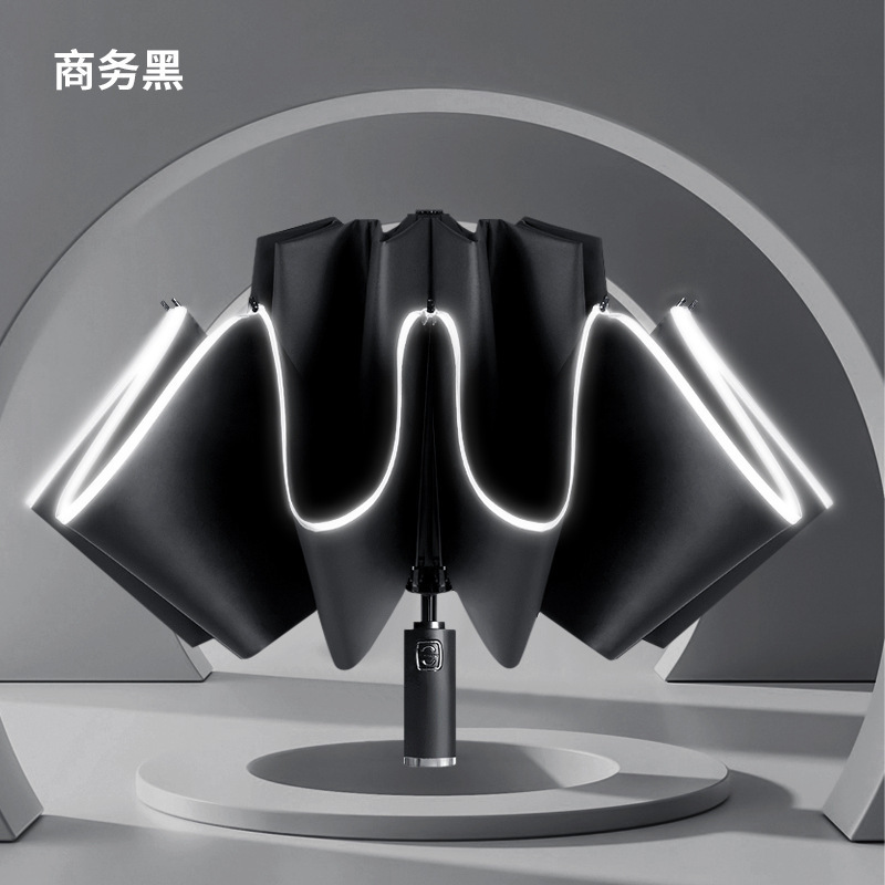 手电筒反向伞全自动雨伞反光商务晴雨伞黑胶防嗮遮阳伞太阳伞