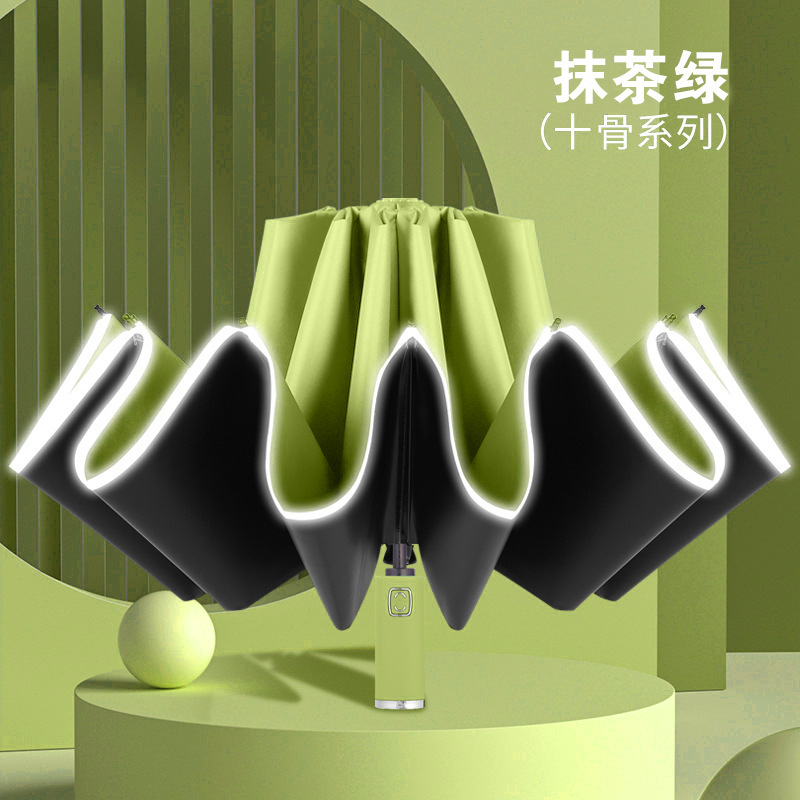 • ♖带手电筒反向伞不透光黑胶 抹茶绿♖