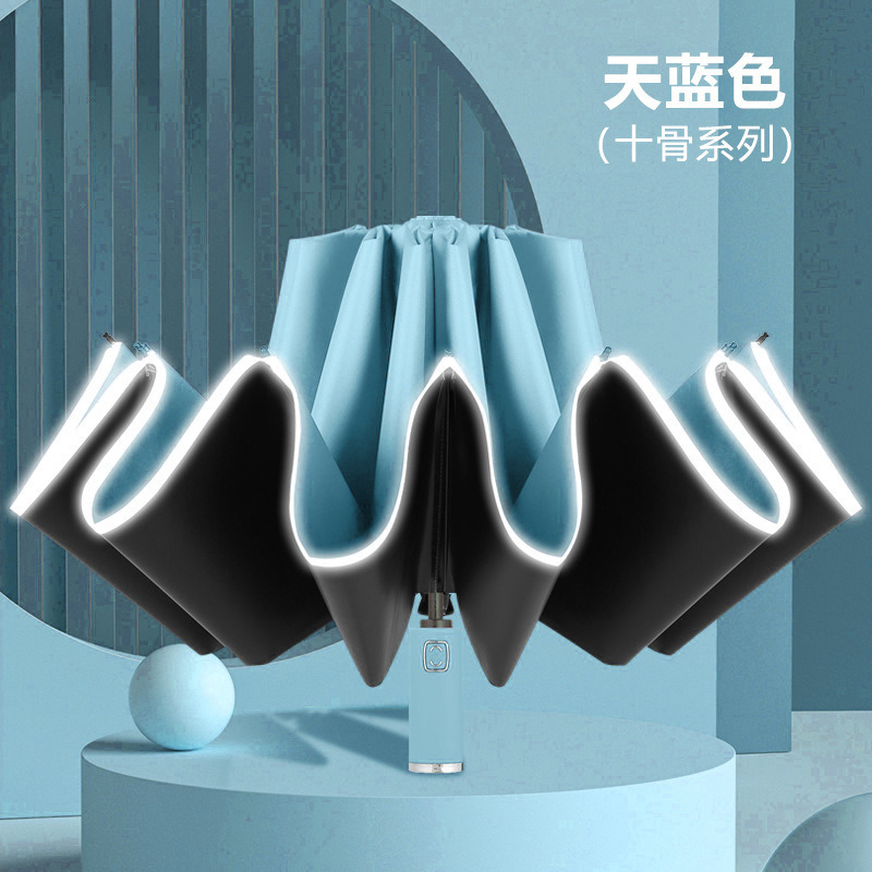 • ♖8骨手动反向伞黑胶 天蓝♖