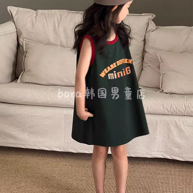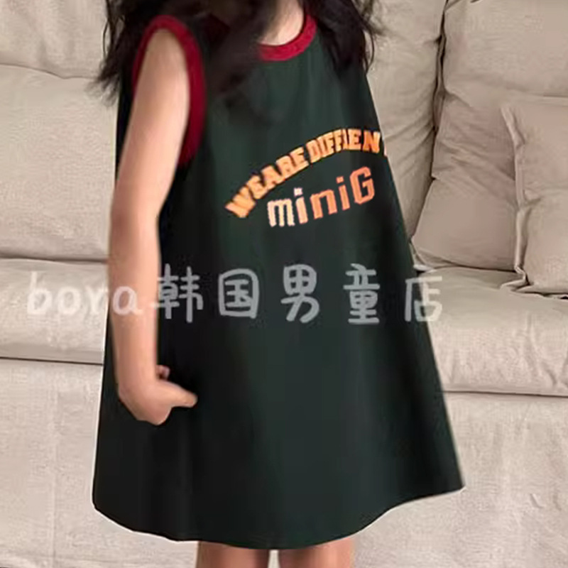 소녀 원피스 2025 새로운 여름 큰 어린이 패션 브랜드 민소매 조끼 티셔츠 치마 어린이 코튼 스커트 얇은 5