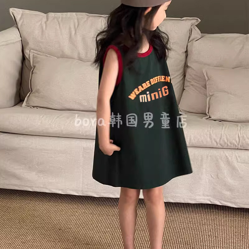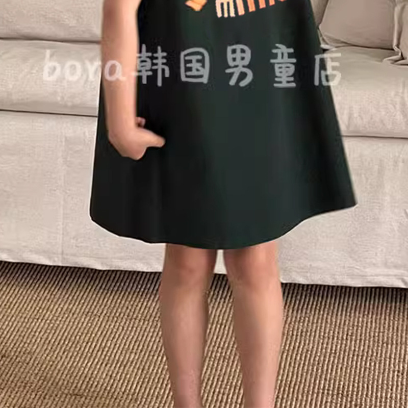 소녀 원피스 2025 새로운 여름 큰 어린이 패션 브랜드 민소매 조끼 티셔츠 치마 어린이 코튼 스커트 얇은 5스토어 가기