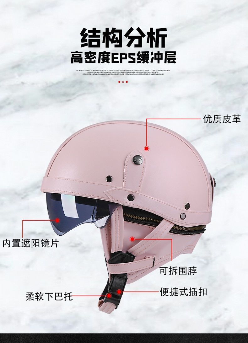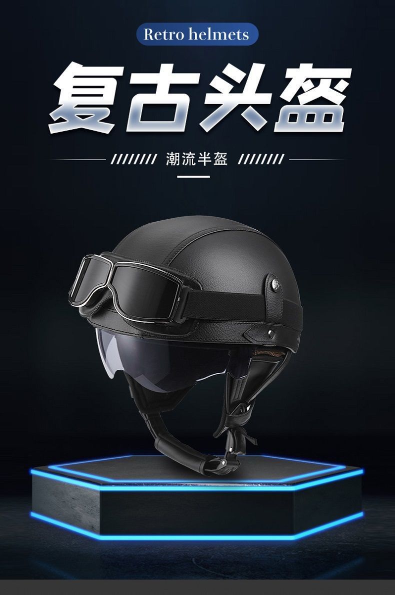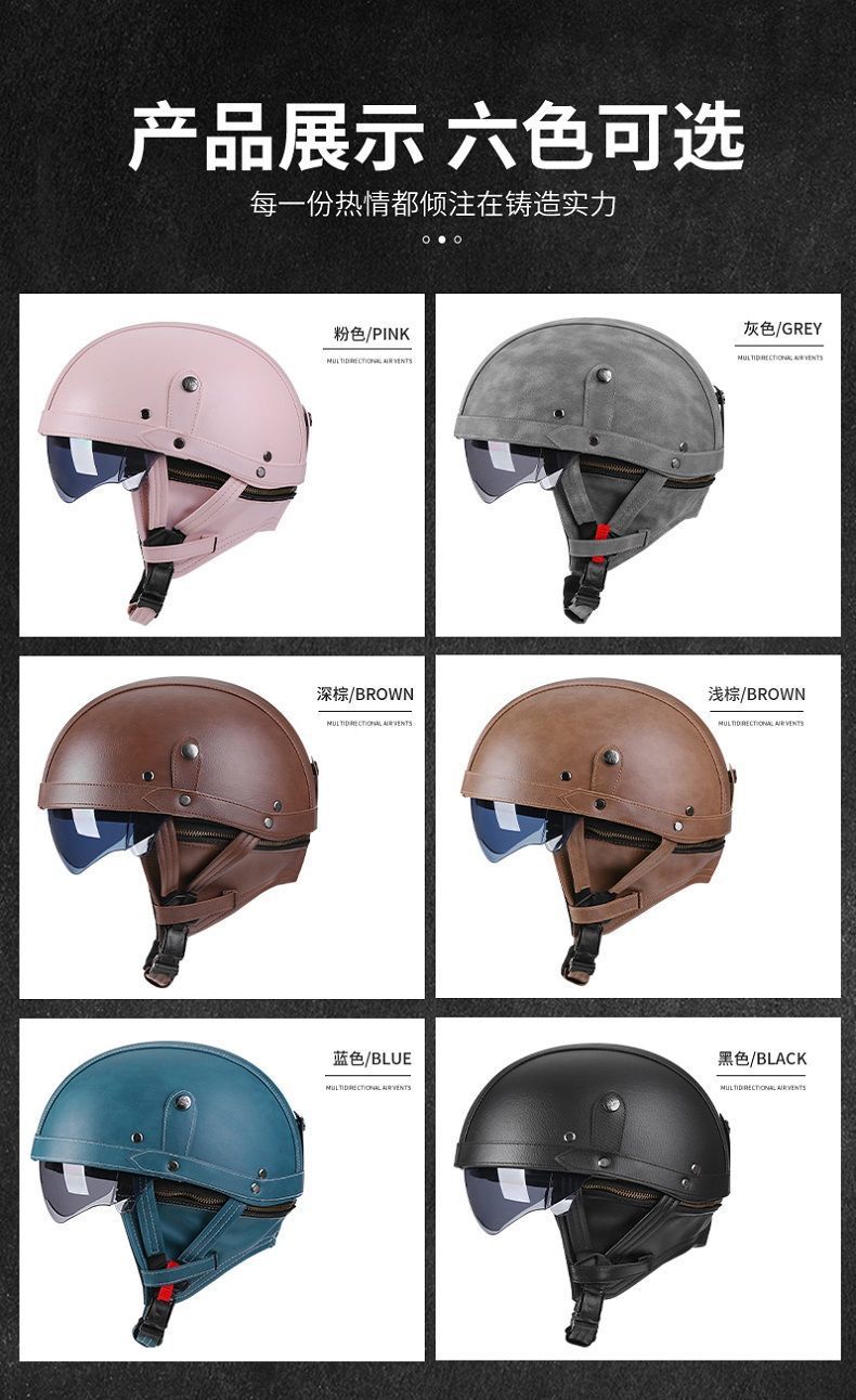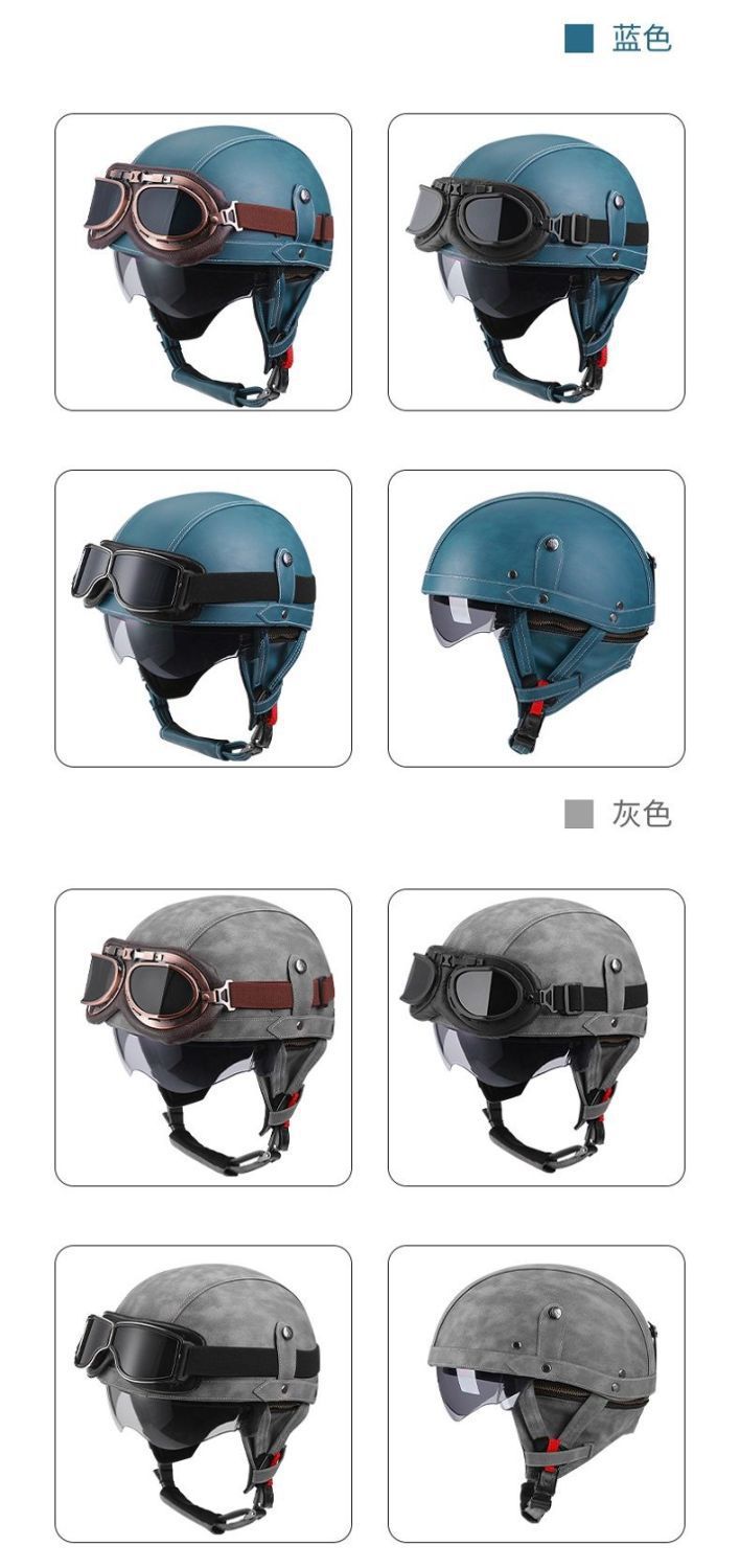 3C 포시즌 유니버설 남녀 레트로 하프 헬멧 가죽 헬멧 전기 오토바이 헬멧 분리 가능한 스카프 Hy7스토어 가기