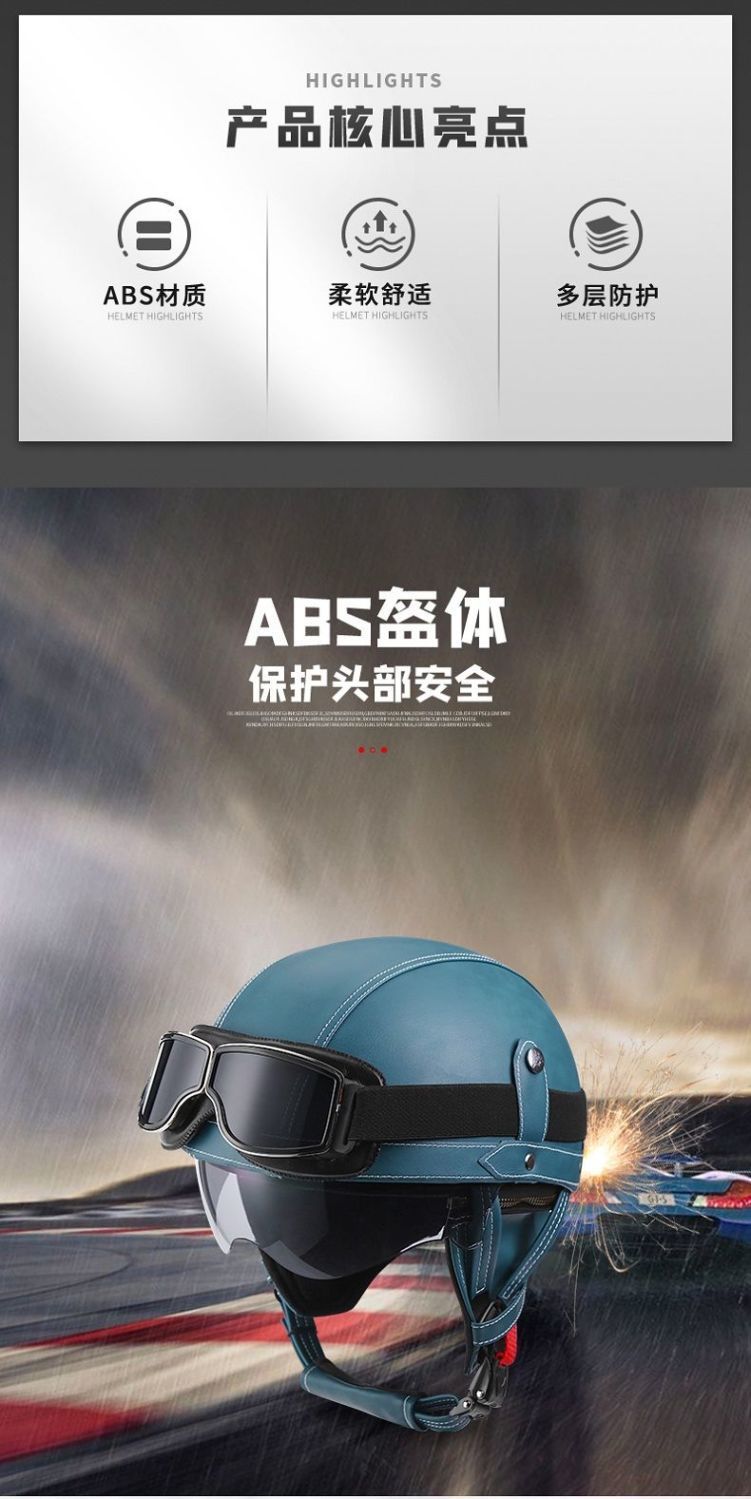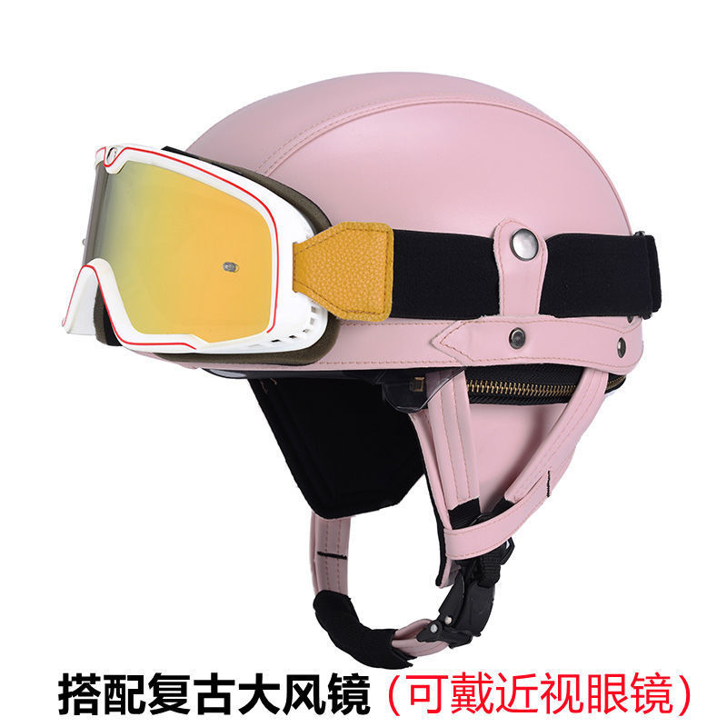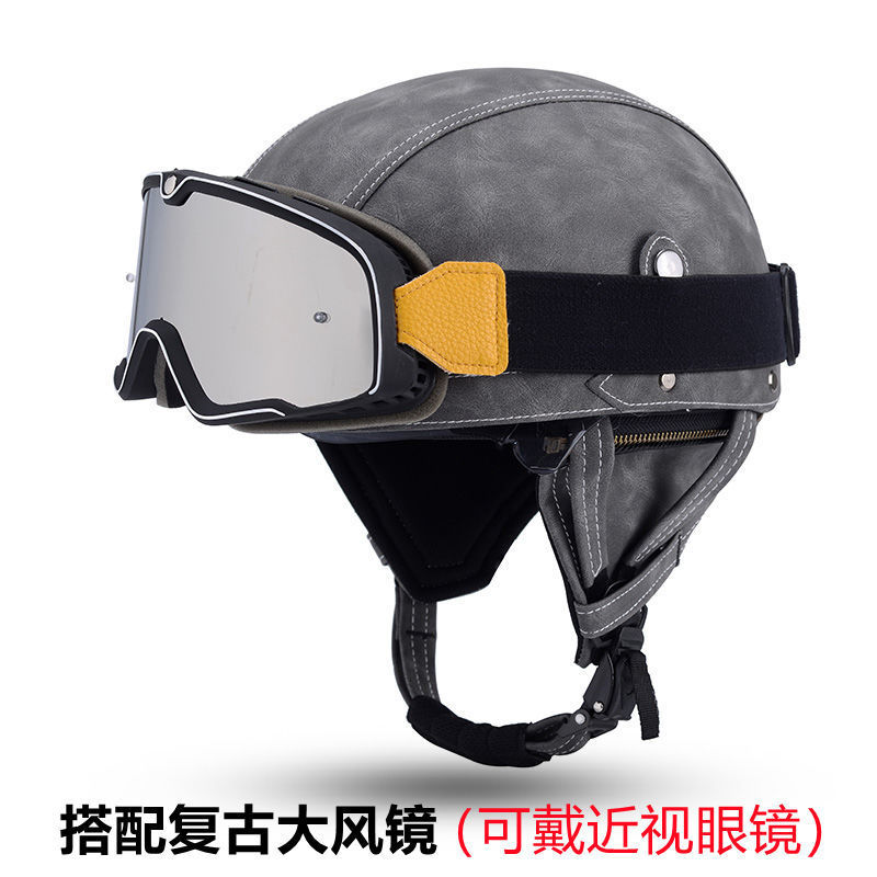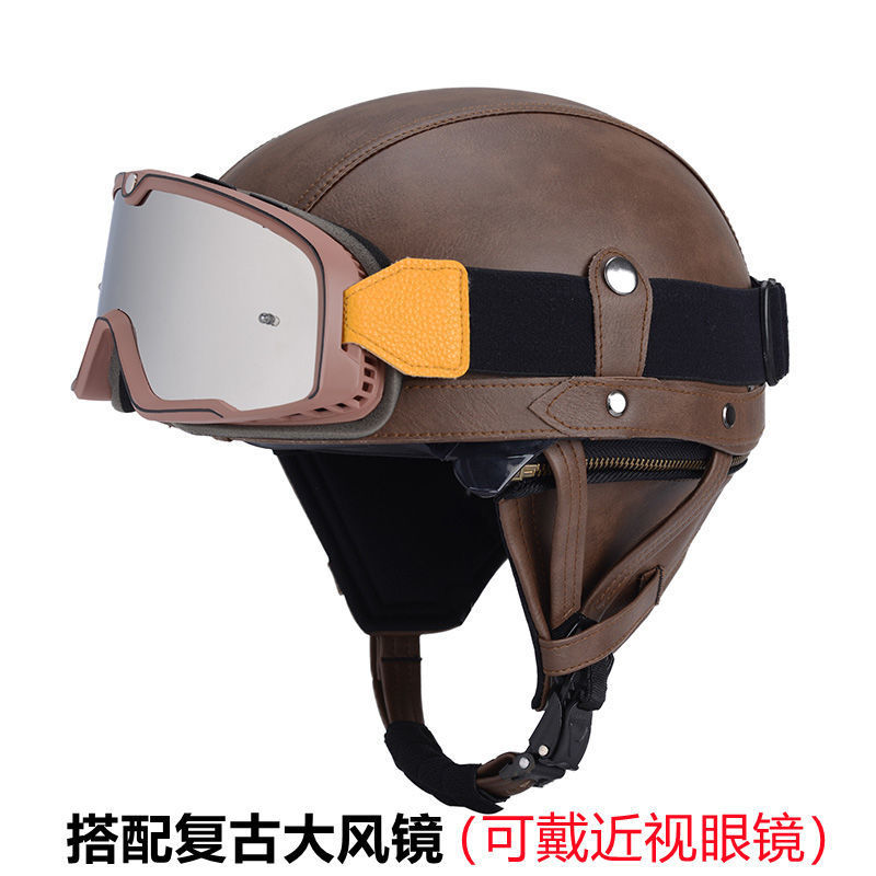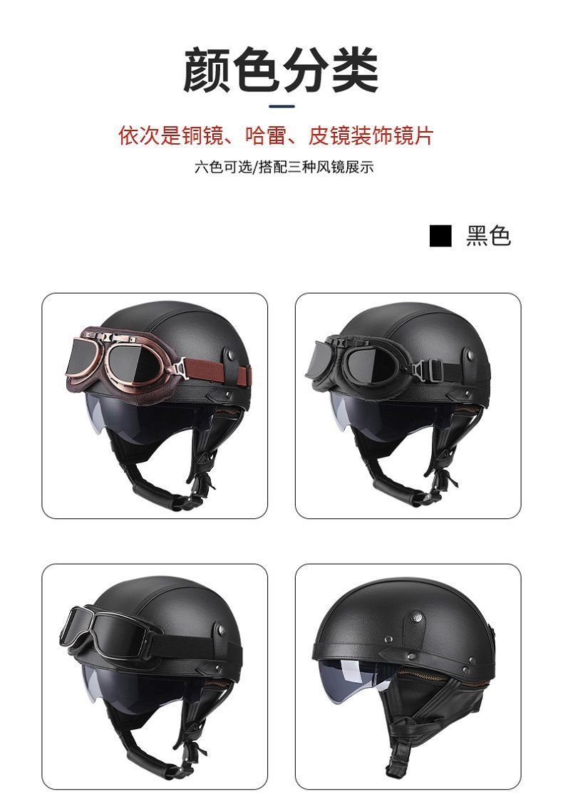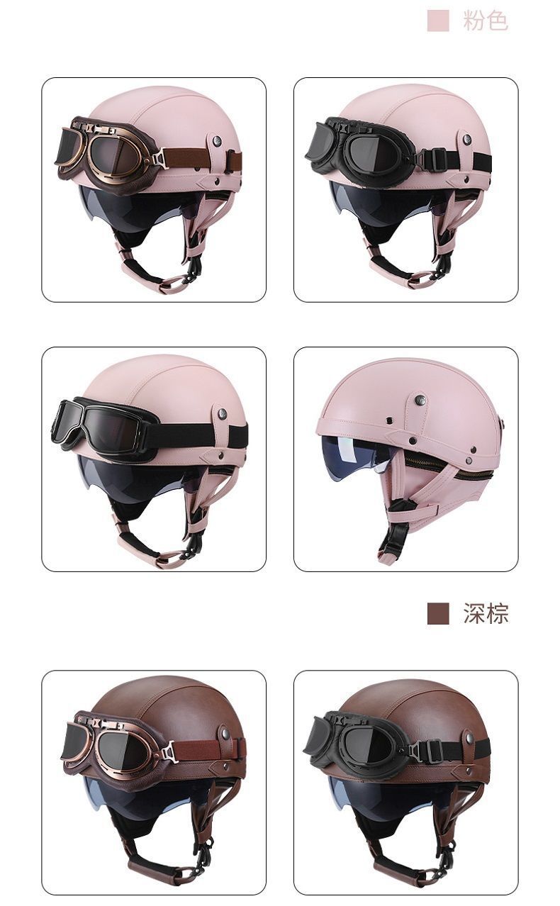 3C 포시즌 유니버설 남녀 레트로 하프 헬멧 가죽 헬멧 전기 오토바이 헬멧 분리 가능한 스카프 Hy7스토어 가기