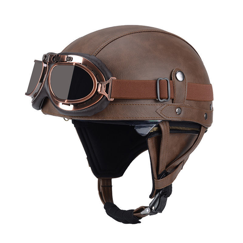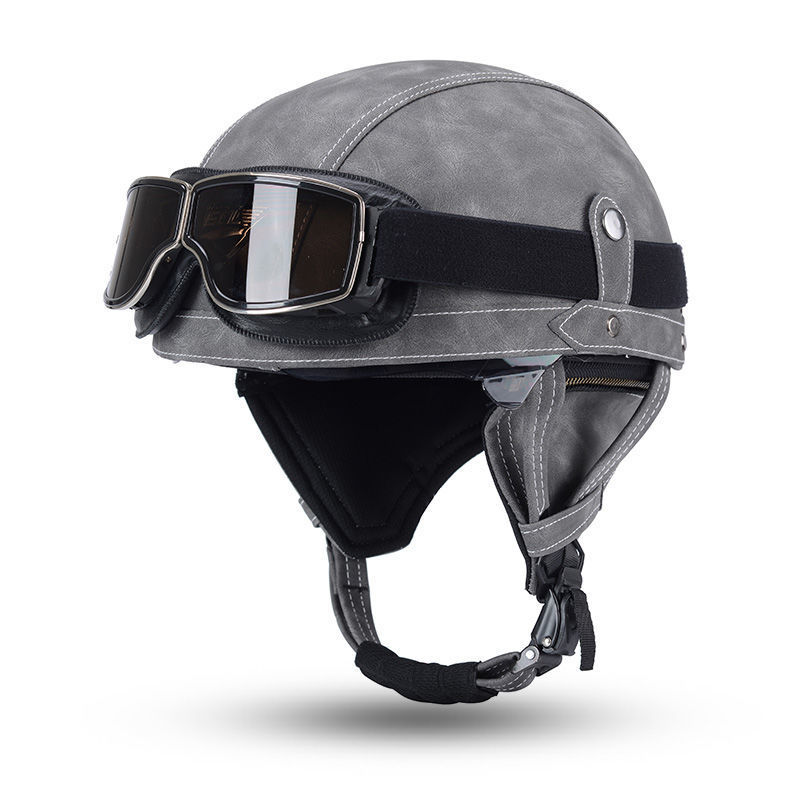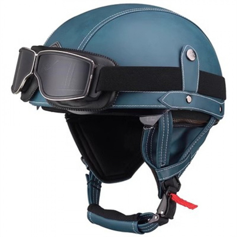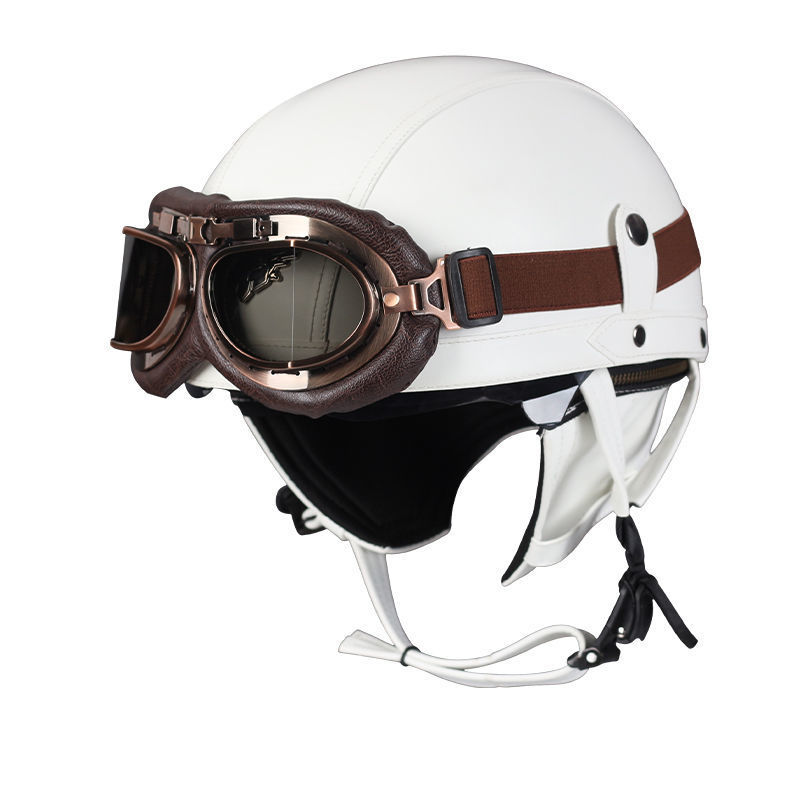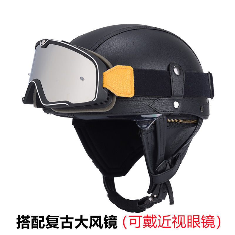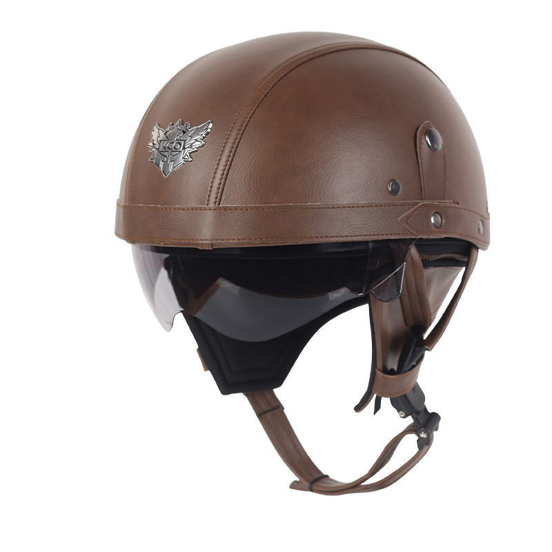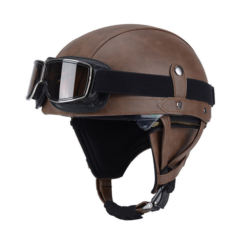 3C 포시즌 유니버설 남녀 레트로 하프 헬멧 가죽 헬멧 전기 오토바이 헬멧 분리 가능한 스카프 Hy7