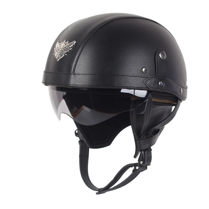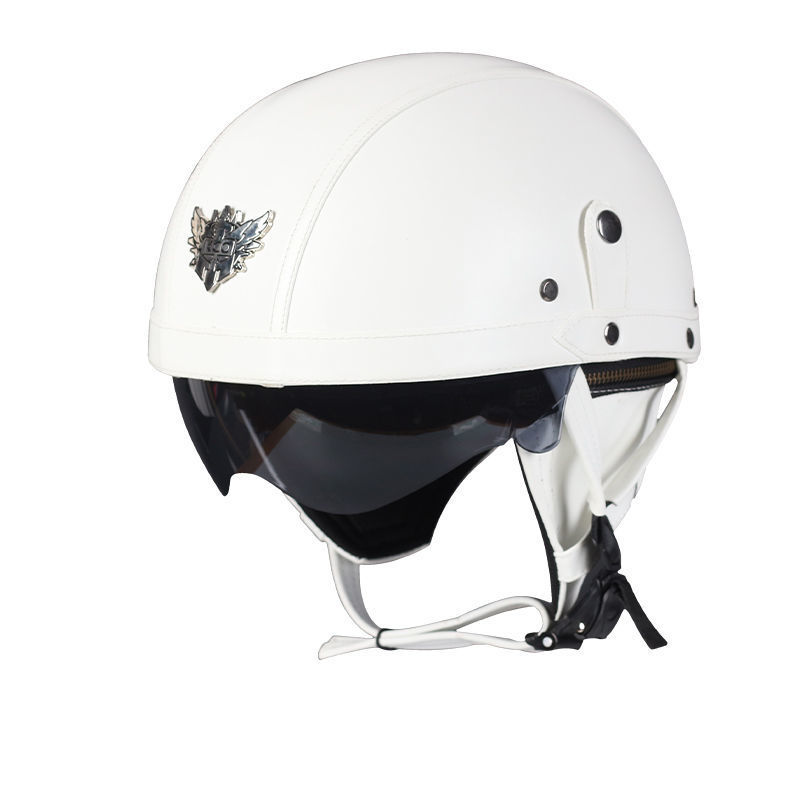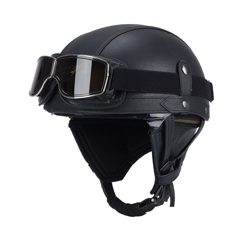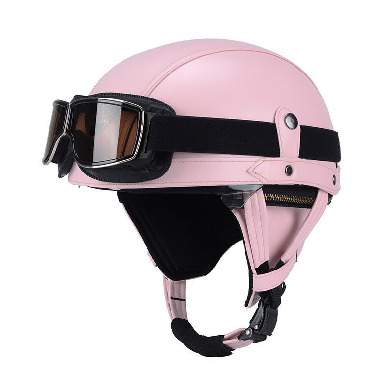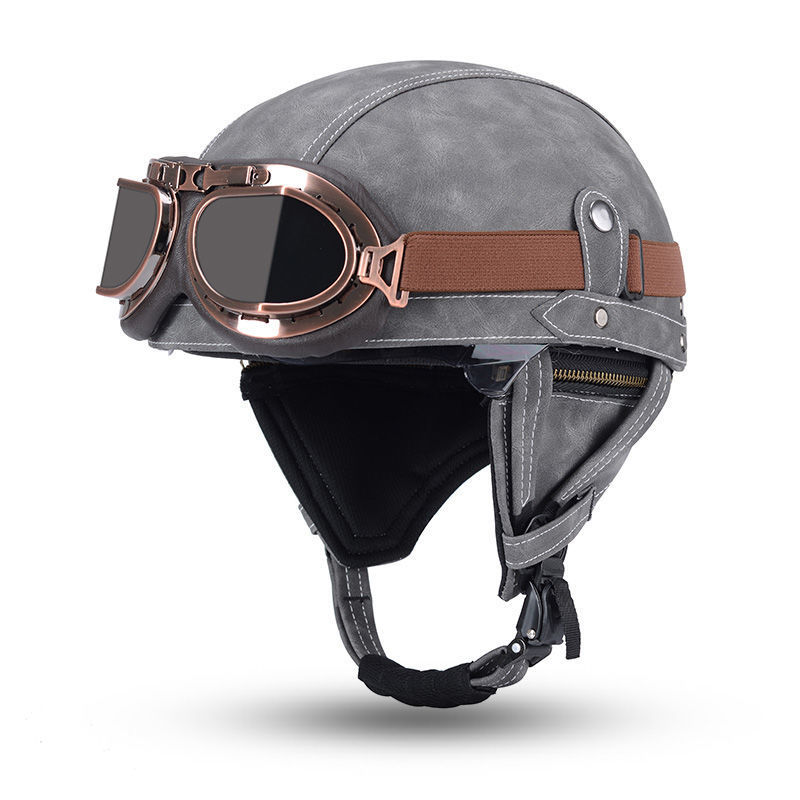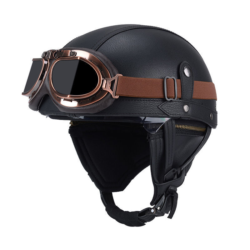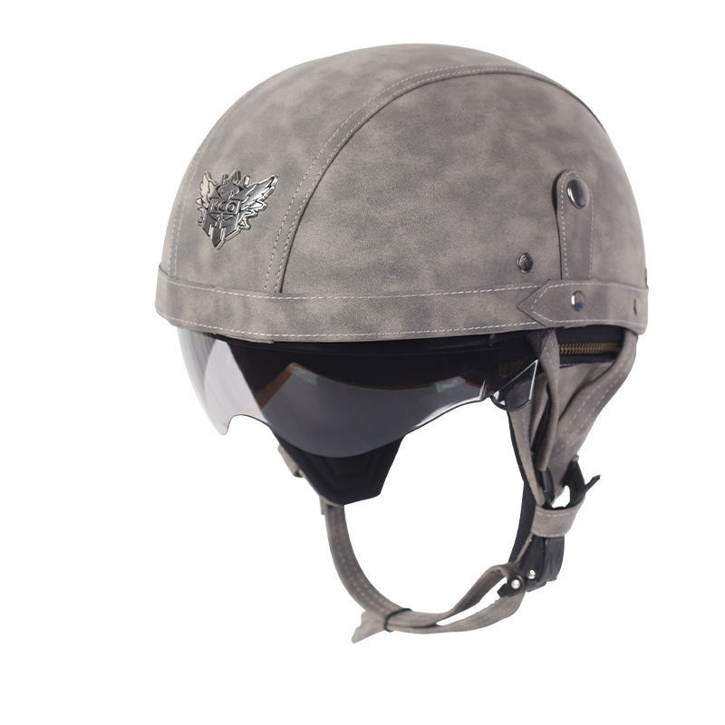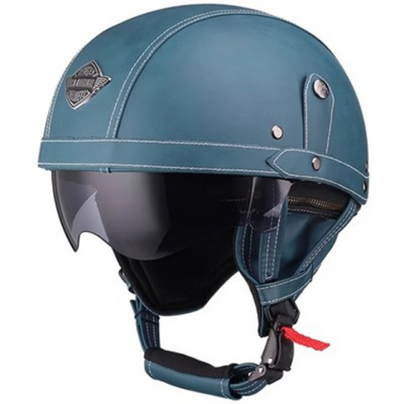 3C 포시즌 유니버설 남녀 레트로 하프 헬멧 가죽 헬멧 전기 오토바이 헬멧 분리 가능한 스카프 Hy7