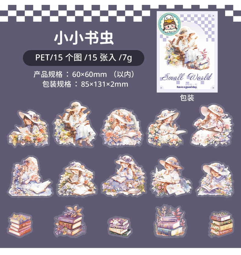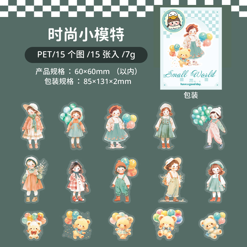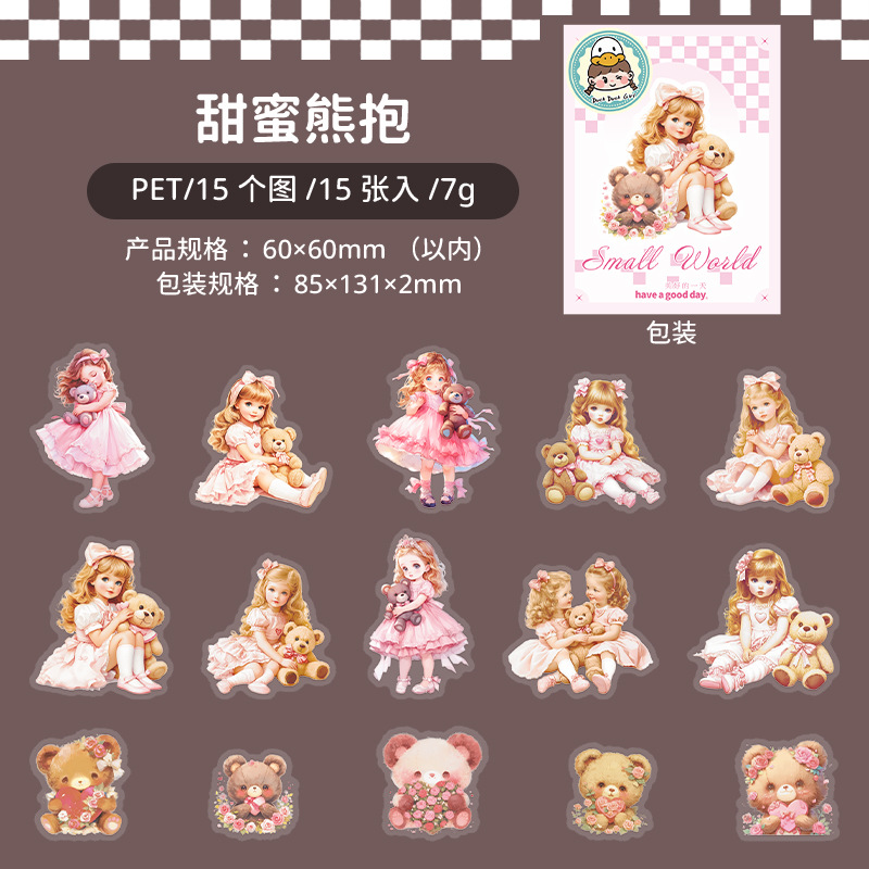 아름다운 날 작은 세계 시리즈 캐릭터 테마 PET 스티커 콜라주 유럽 복고베이스 장식 6스토어 가기