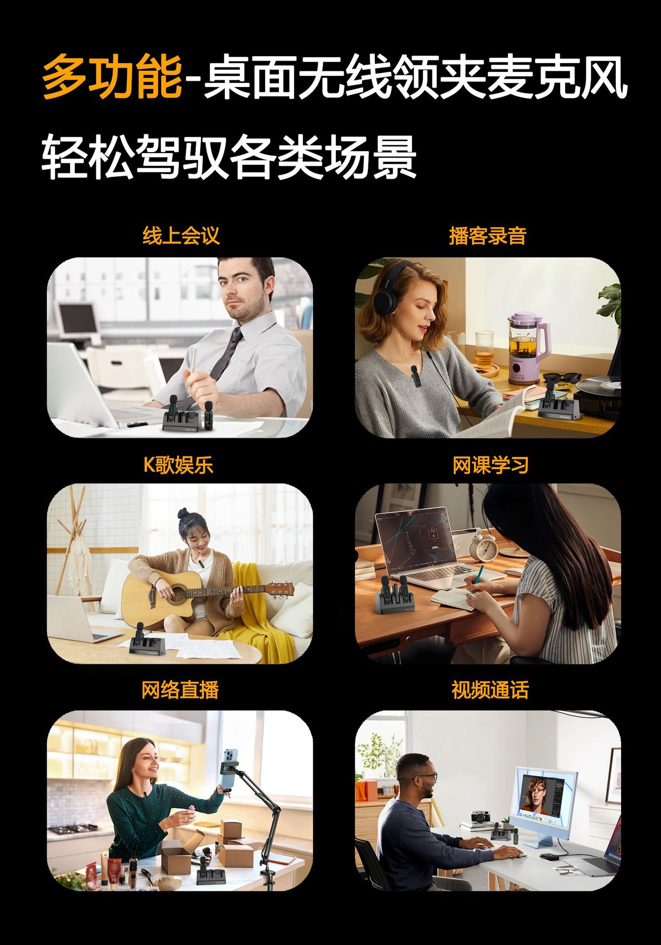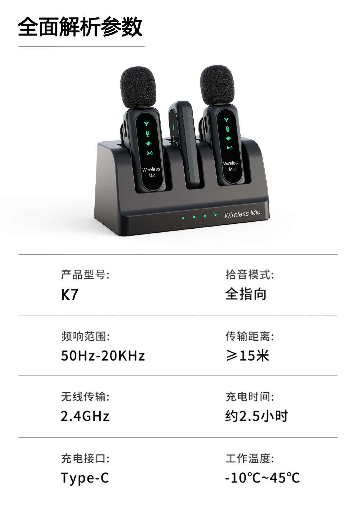 국경 간 새로운 K7 무선 칼라 클립 마이크 휴대 전화 비디오 라이브 라디오 지능형 소음 감소 작은 마이크